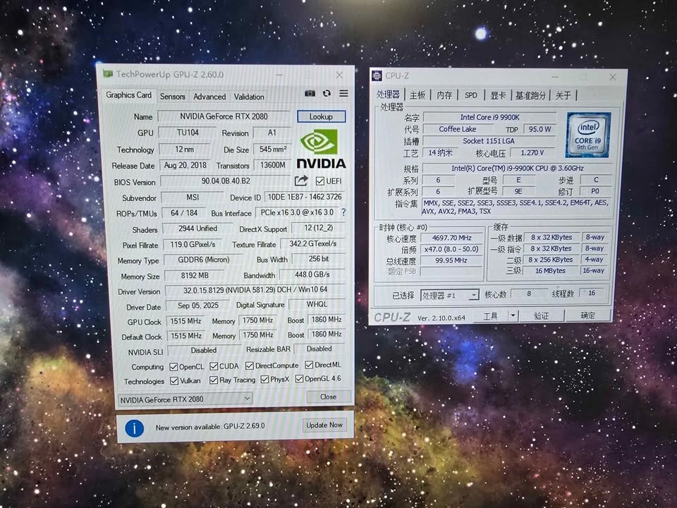 ⭐Intel i9 9900k, great chip, this one is capable of all-core 5.2Ghz, or 5.4Ghz single-core.