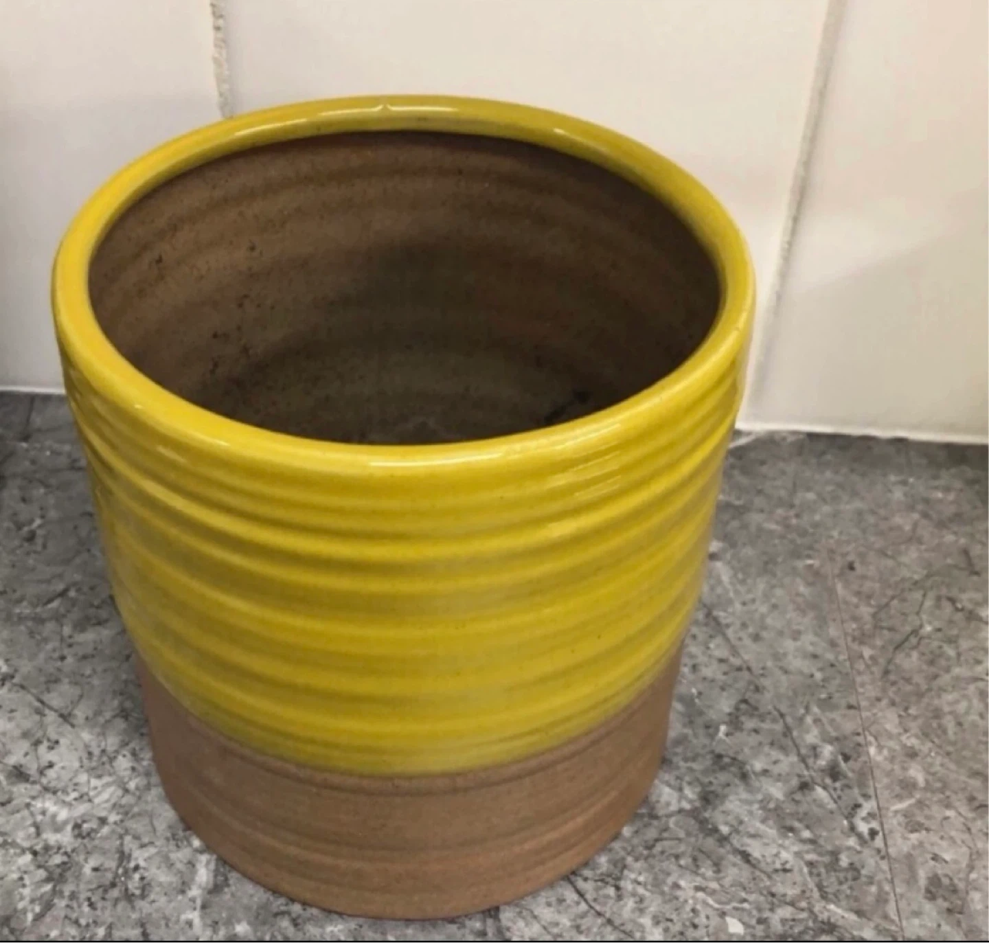Selling a cute yellow ceramic flower pot! It's in great condition and would be perfect for adding a pop of colour to any room