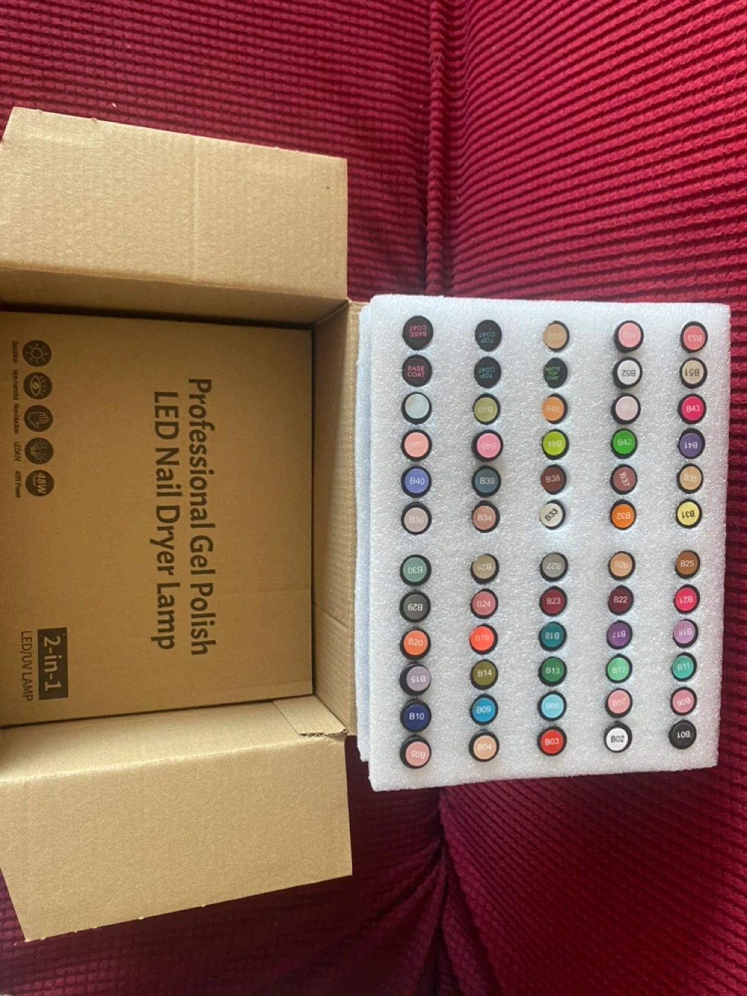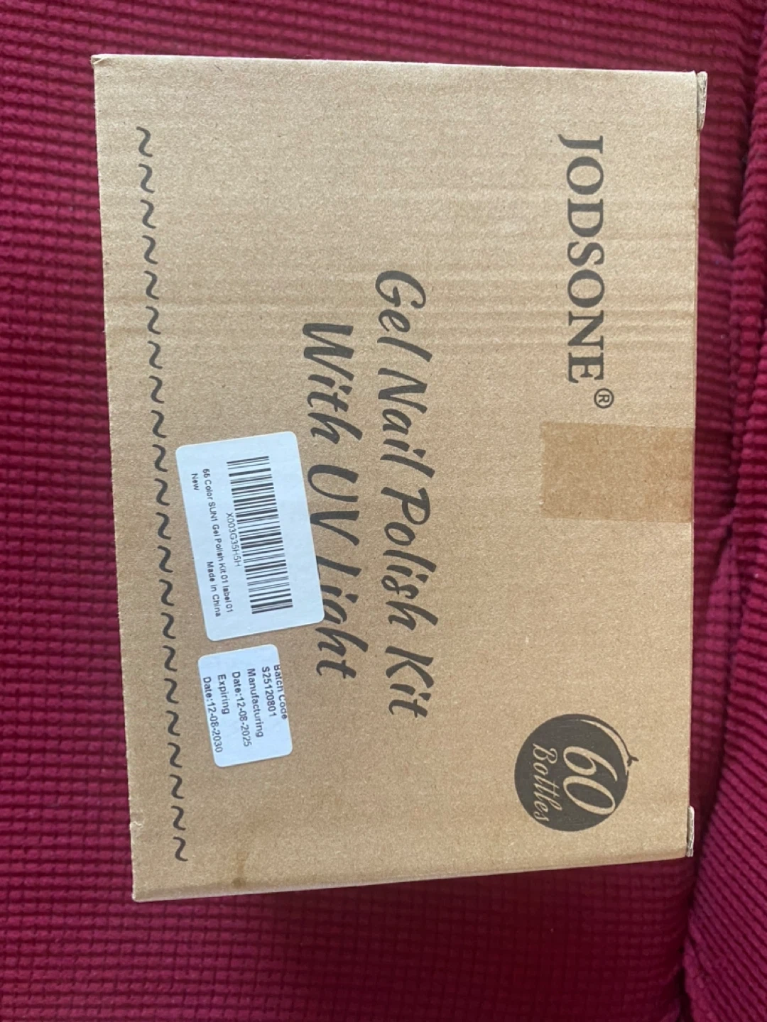 This JODSONE gel nail polish kit includes 60 bottles of polish, along with a base coat, top coat, and a 2-in-1 LED UV lamp. The manufacturing date is August 26, 2020. It's perfect for at-home manicures!