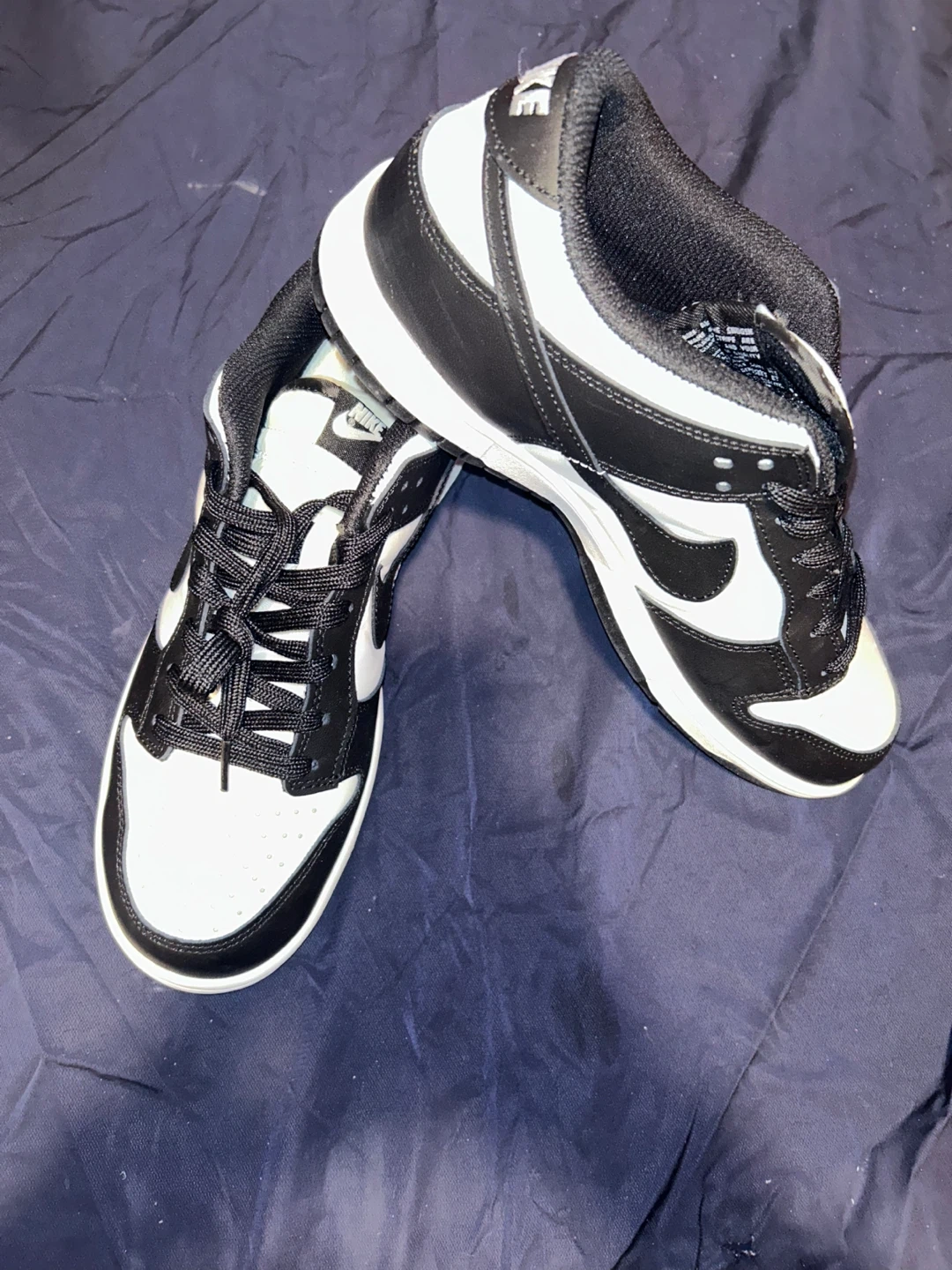 These Nike Dunk Lows come in a classic black and white colorway. They feature a leather upper and a rubber outsole. This pair is ideal for everyday wear. I have different sizes