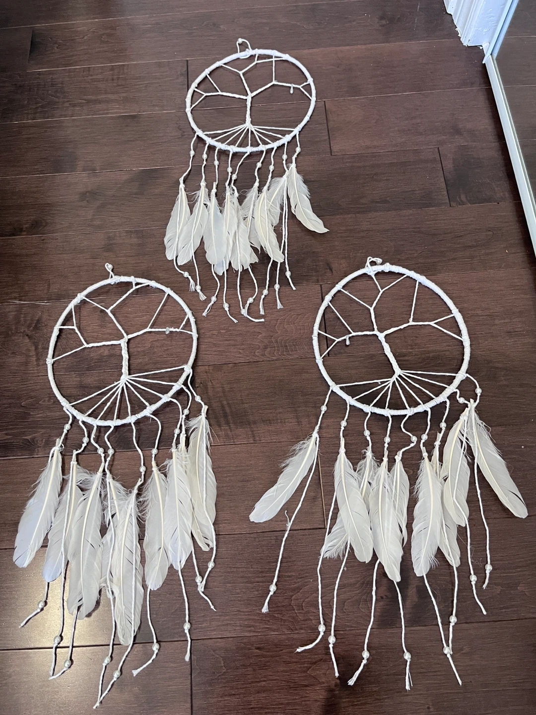 Set of 3 White Dreamcatchers with Feathers