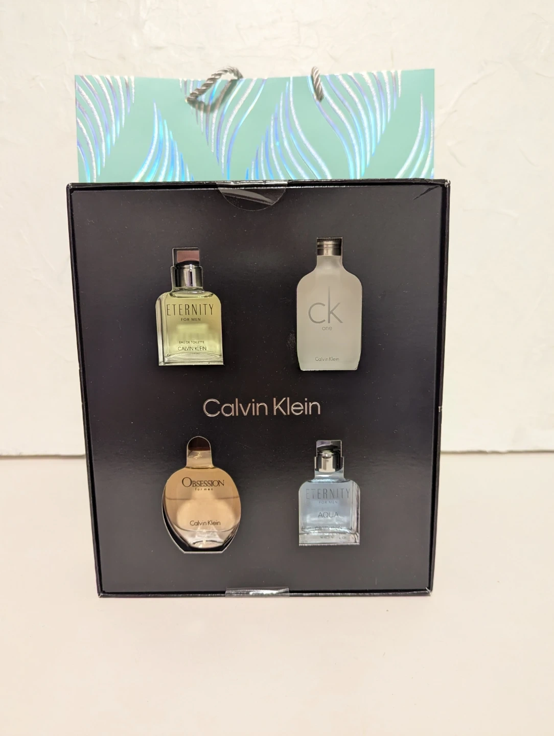 This Calvin Klein gift set includes four miniature fragrances: Eternity for Men, CK One, Obsession for Men, and Eternity Aqua for Men. It's a great way to try out different scents from the brand.