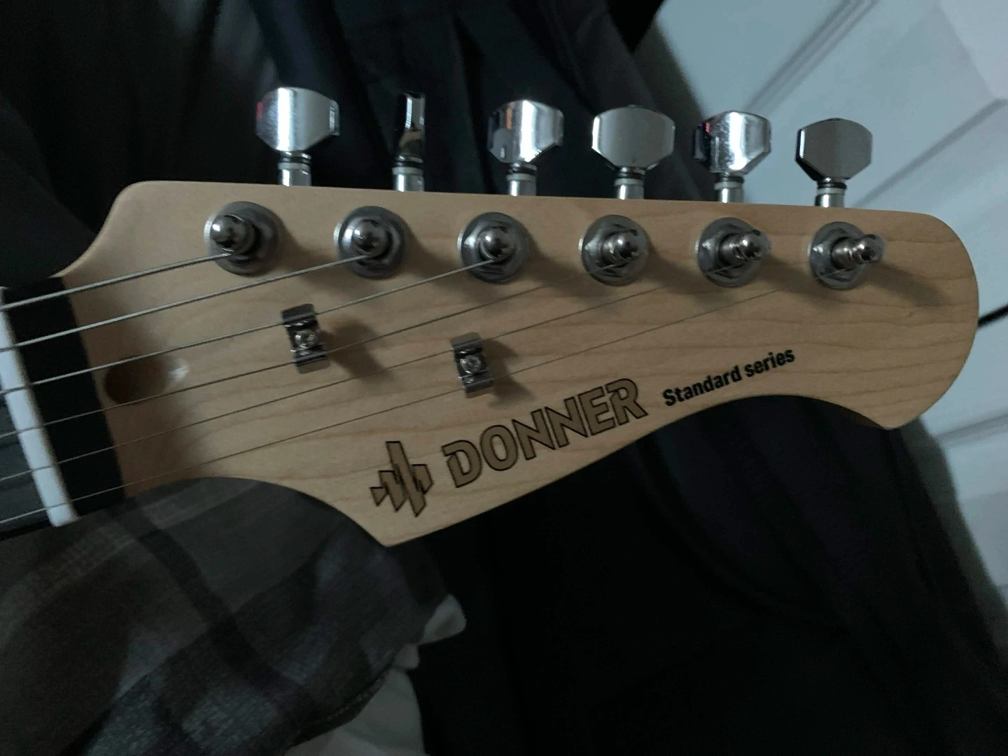 This is a Donner electric guitar. It's black with a white pickguard. Great condition. Comes with a free guitar bag. Can add a small amp, strings, and electric guitar aux cable for an extra $10.