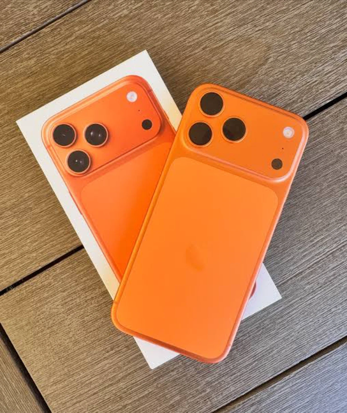 It's an Apple iPhone 17 Pro in Cosmic Orange. It comes with 256GB of storage and includes the original box and charging cable. This phone was purchased on September 26, 2025.