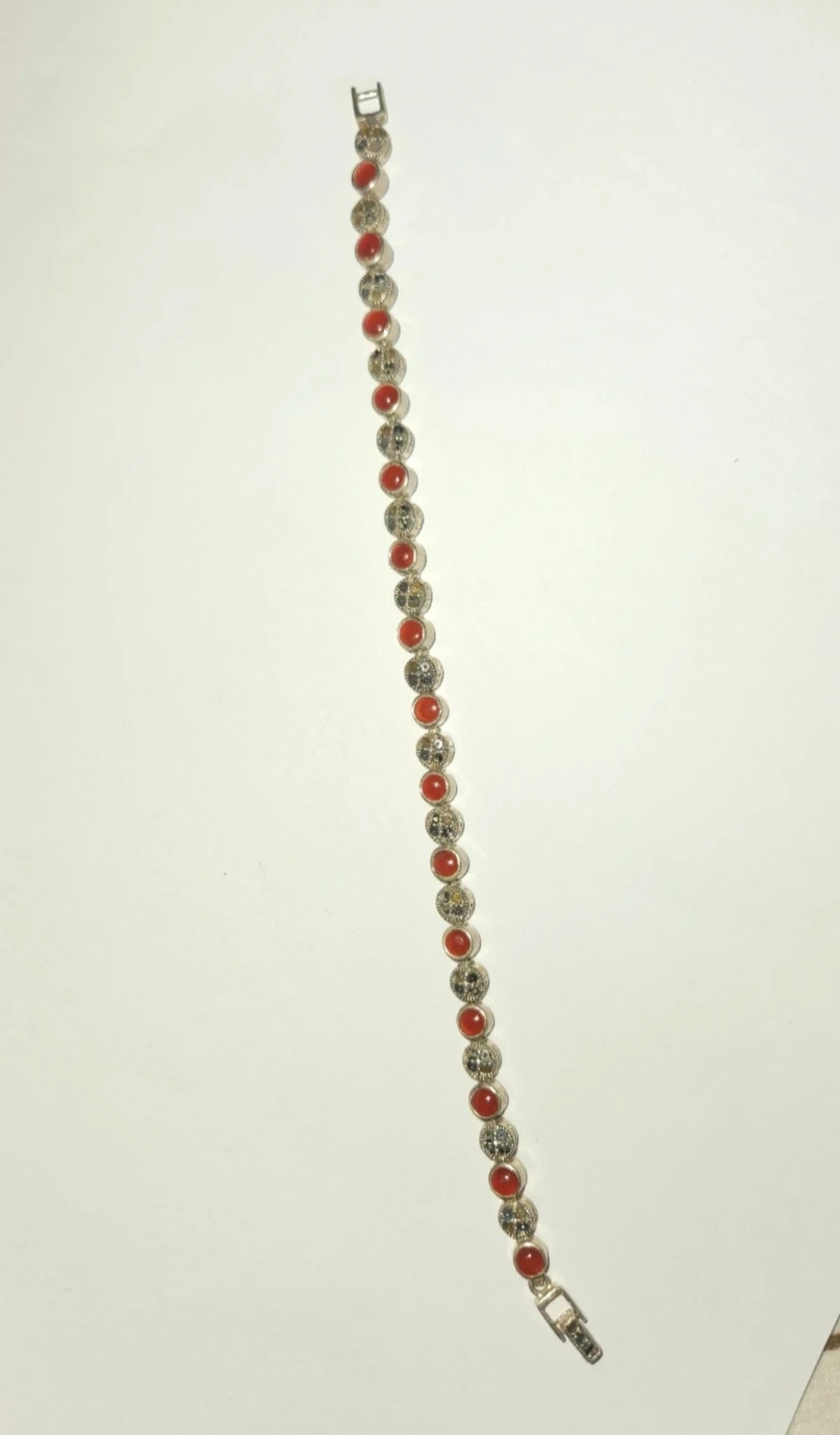 Beautiful Vintage 925 Silver Bracelet – Red Stones, 7”