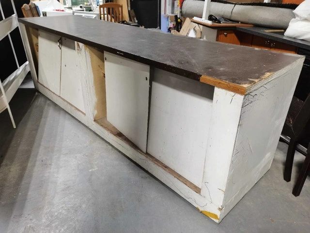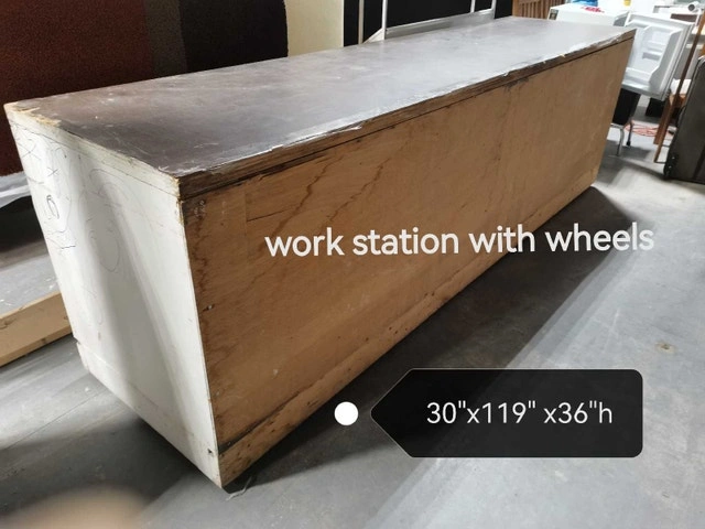 This used work station measures 30"x119"x36"h and comes equipped with wheels for easy mobility. Dimensions: 30 inches by 119 inches by 36 inches in height. Features: Equipped with wheels. I am finishing my work projects and no need it any more. I hope it can be put to good use! If the ad is up, the workstation is still available! Note: need big truck, its almost 10 ft long.
