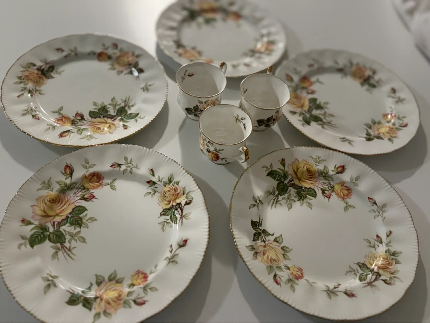 Paragon Peace Rose Fine Bone China Set -3 Cups & 5 dining Plates