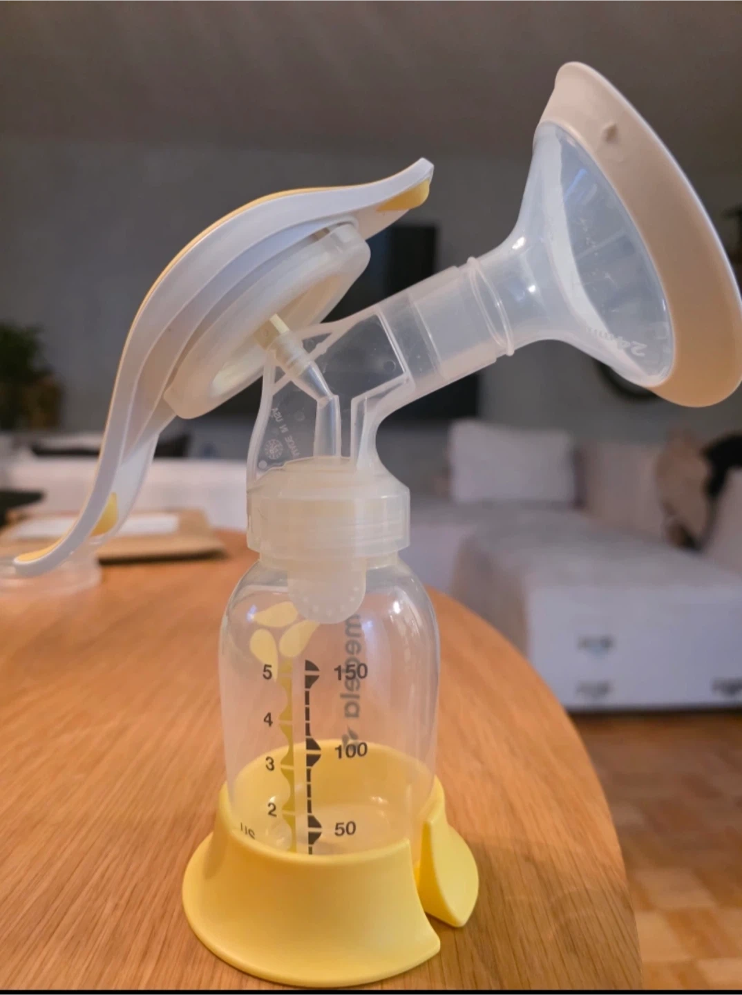 This is a Medela Harmony manual breast pump. It comes with the PersonalFit Flex™ breast shield. Includes a bottle stand to prevent tipping over.