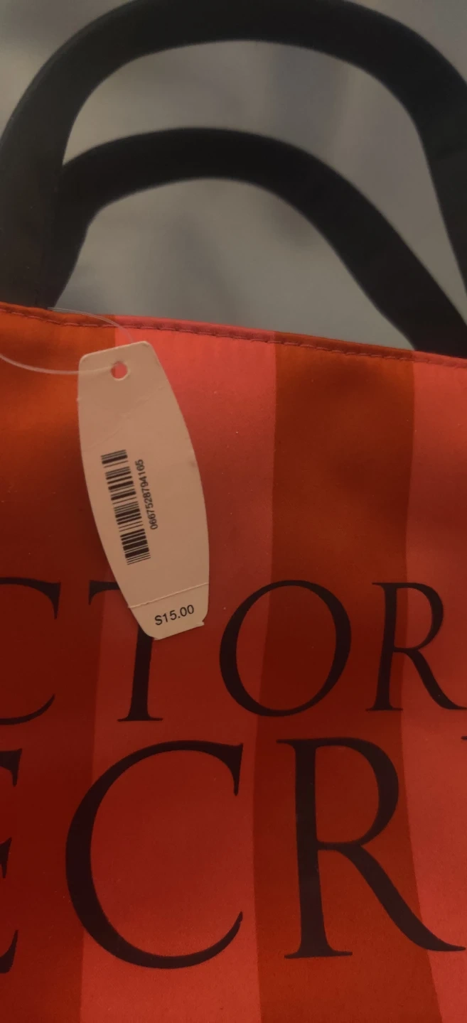 Cute pink and red striped tote bag from Victoria's Secret. It's lined inside and have no inside pockets