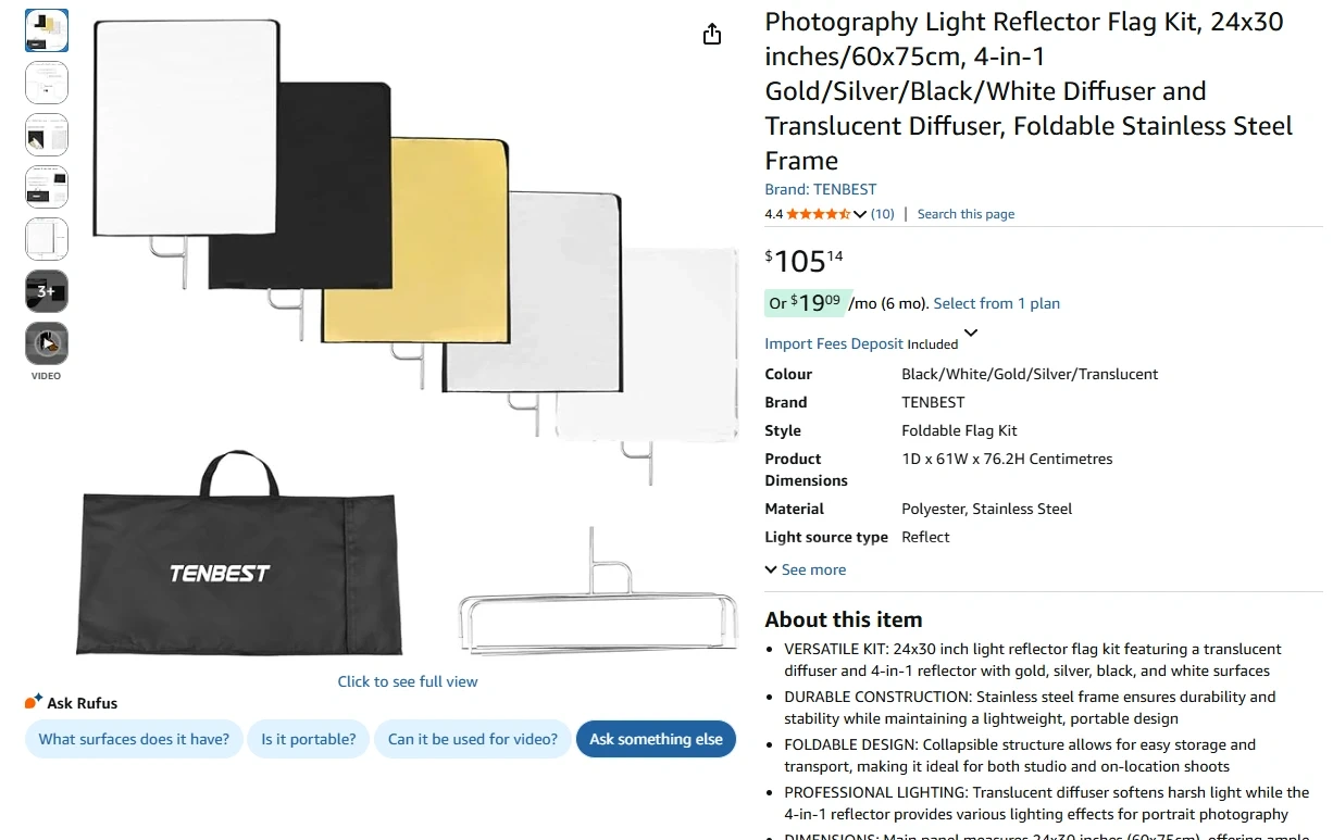 DIMENSIONS: Main panel measures 24x30 inches (60x75cm), offering ample coverage for studio portrait lighting setups