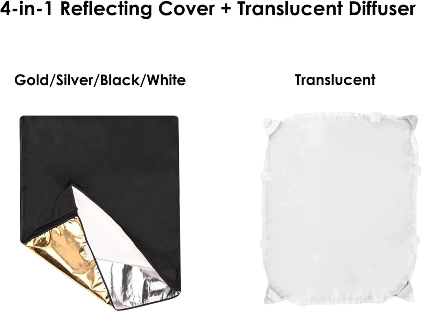 PROFESSIONAL LIGHTING: Translucent diffuser softens harsh light while the 4-in-1 reflector provides various lighting effects for portrait photography