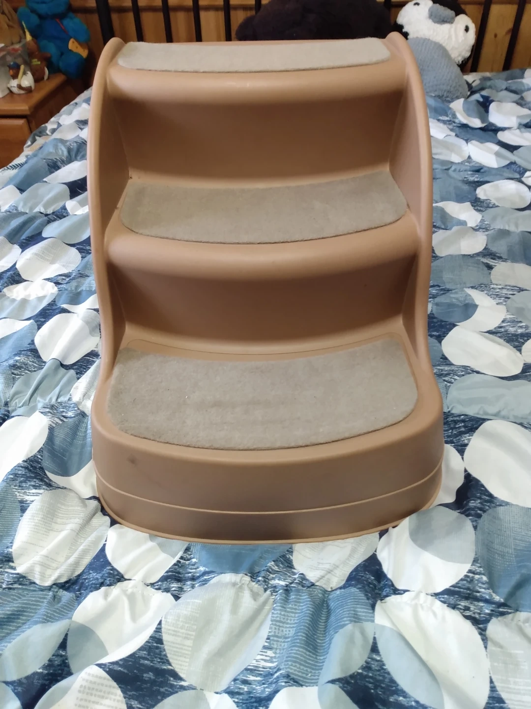 Help your small pet reach new heights with these handy 3-step pet stairs. They're made of sturdy plastic with non-slip treads on each step. Great for older dogs or cats needing a little boost!