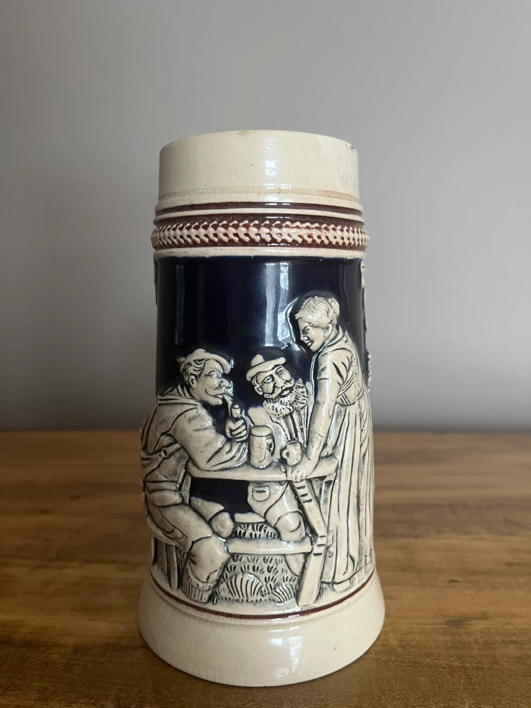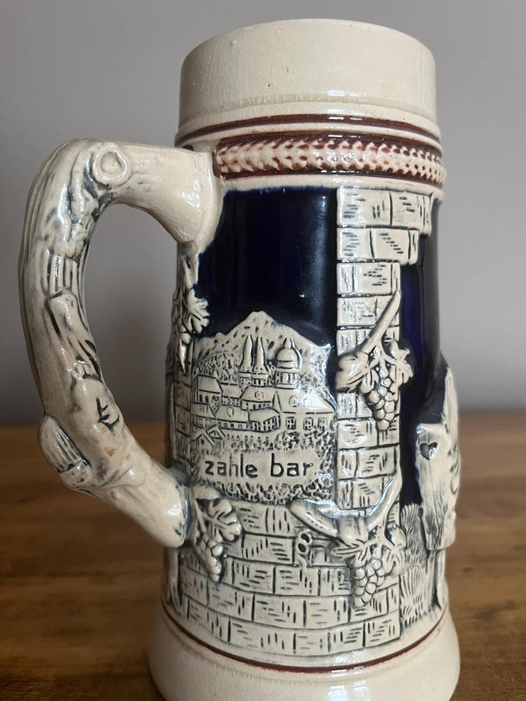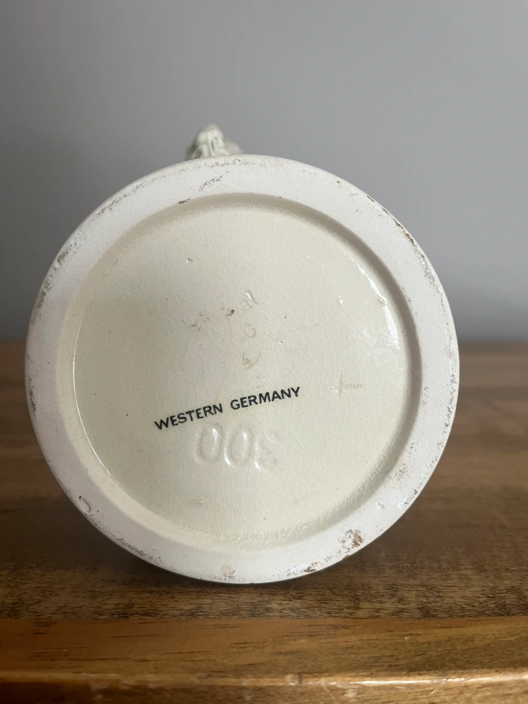 Bring old world charm to your collection with this vintage ceramic beer stein by Original King that was crafted in Western Germany.