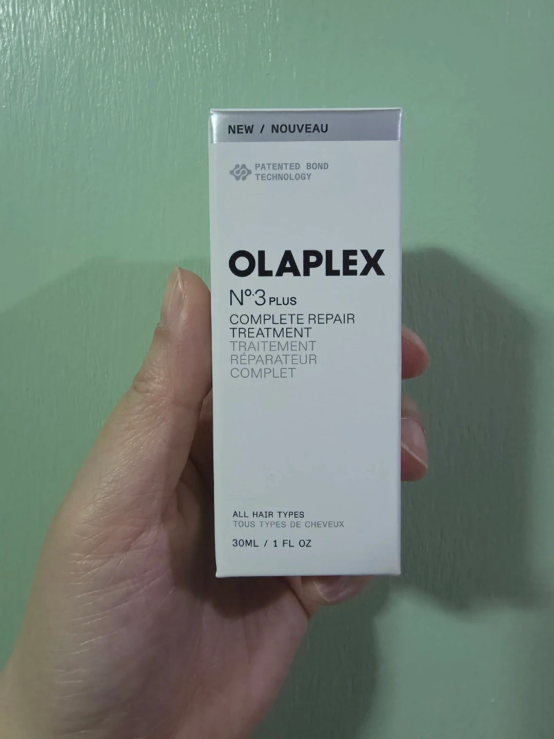 Olaplex No. 3 Plus Complete Repair Treatment. It's designed for all hair types and uses patented bond technology. Apply generously on wet hair from roots to ends, leave on for 3 minutes, then rinse. For best results, use every 1-3 washes. 30ml / 1 FL OZ. (Standard size 100ml is $34 at Sephora)