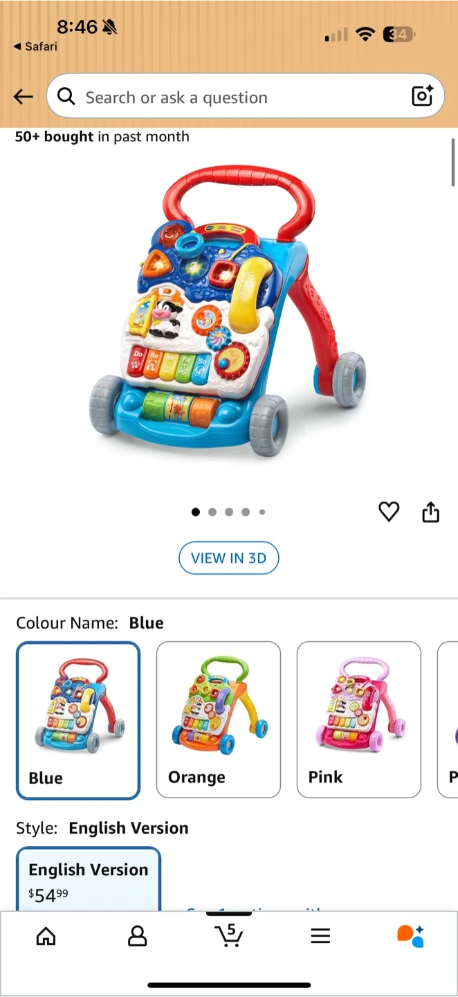 This VTech Sit-to-Stand Learning Walker comes in blue and features an English version style. It has interactive activities and a piano keyboard for fun learning. It's great for helping little ones take their first steps!