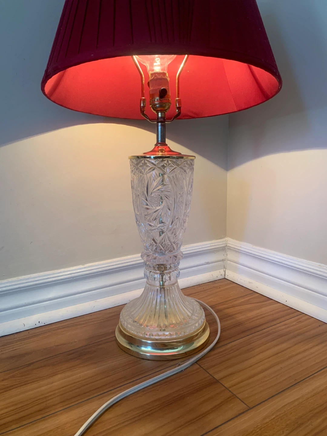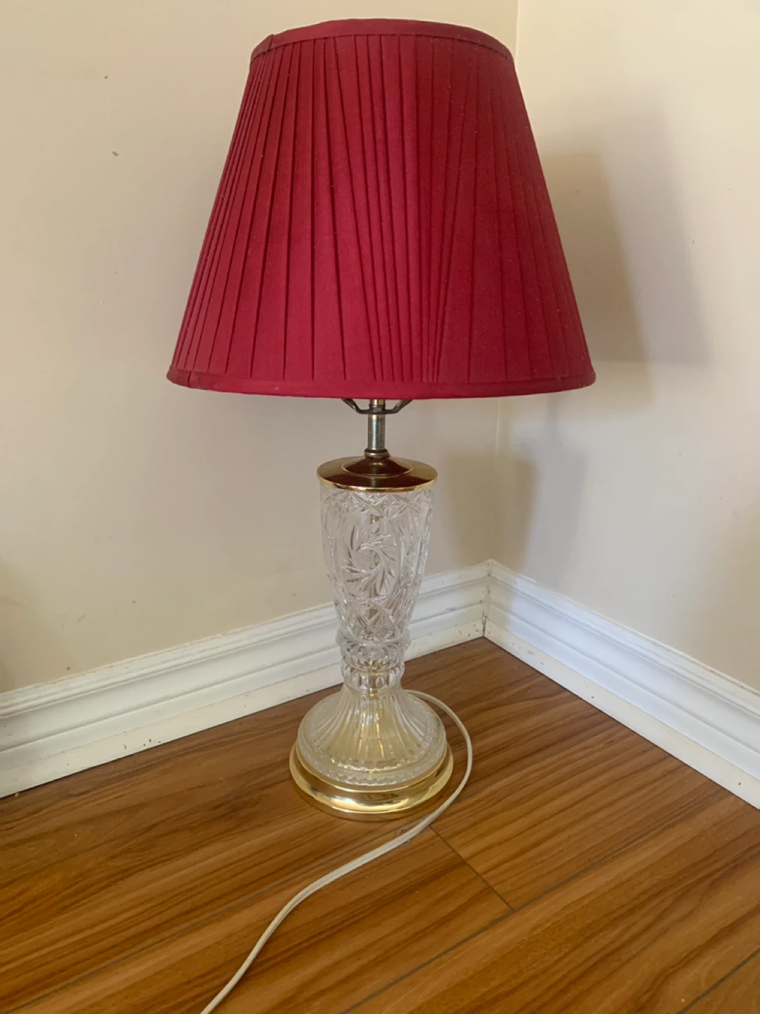 Vintage Crystal Accent Table Lamp with Red Shade