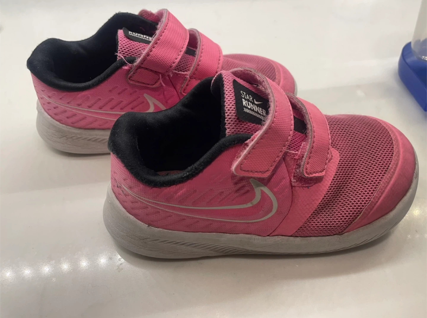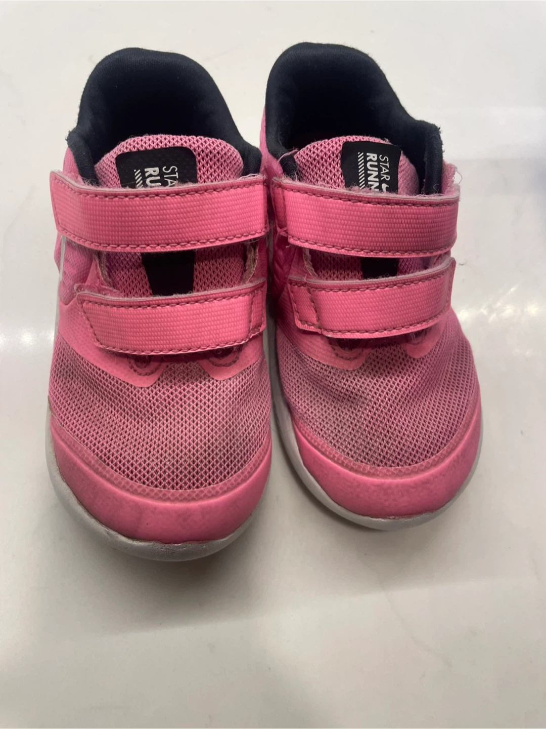 Selling a pair of Nike Star Runner toddler shoes in size 8C. They're pink and have a velcro closure, making them easy for little ones to put on and take off. Perfect for running around!