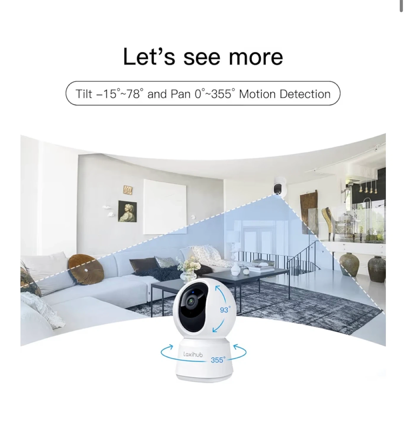 * 1 - 360° Angle Covered - The P2T wifi camera has a 105° wide-angle enhanced lens, combined with 355° horizontal and 60° vertical rotation range, creating a complete 360° coverage.