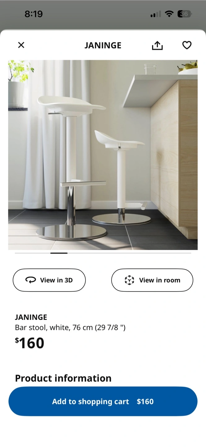 💺 2x IKEA JANINGE Bar Stools (White) – $100 for both