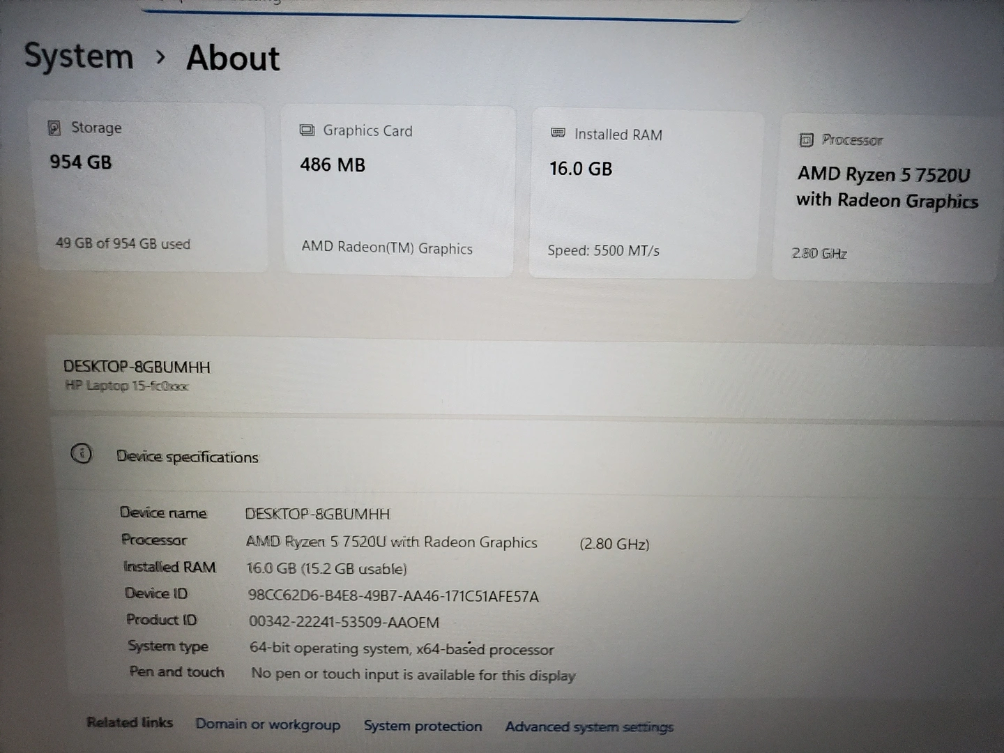 15.6" HP Laptop, AMD Ryzen 5 | 16GB RAM | 1TB SSD