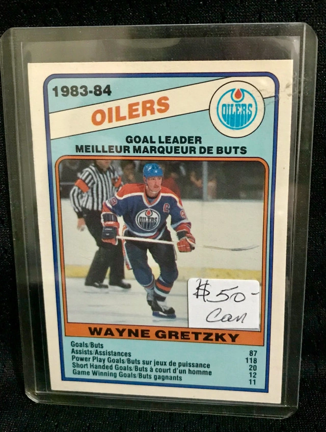 Up for grabs is a 1983-84 O-Pee-Chee Wayne Gretzky hockey card, showcasing "The Great One" during his time with the Edmonton Oilers. This card is a vintage collectible, featuring Gretzky as the Oilers' goal leader. It's a fantastic piece for any hockey memorabilia enthusiast or collector. This vintage card is in great condition considering its age, and it has been stored with care. If you are reading this, yes, it's still available! Don't miss the chance to own a piece of hockey history!