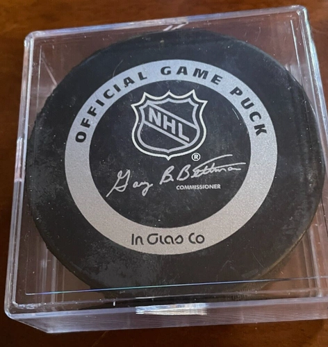 Own a piece of NHL history with this signed official game puck from the 1992 Stanley Cup Finals. This black Inglasco puck features the iconic Pittsburgh Penguins logo and the signature of legendary player Alex Kovalev. The puck comes with a case and is officially licensed by the NHL, making it a must-have for any fan of the team or hockey in general.