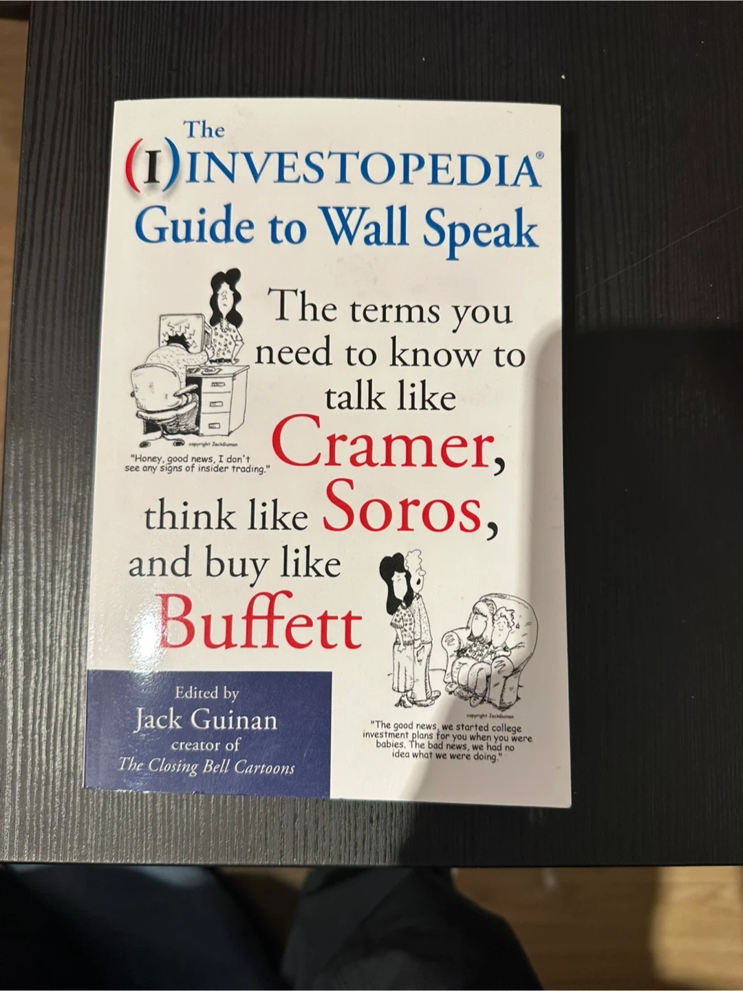 Selling The Investopedia Guide to Wall Speak, edited by Jack Guinan. It's a helpful guide to understanding investing terms and concepts. From the creators of Investopedia's popular investing website, this book presents in-depth definitions of the site's most searched terms. This book covers everything from the basics, such as asset, commodity, and index, to more advanced concepts like tranche, debenture, and value investing