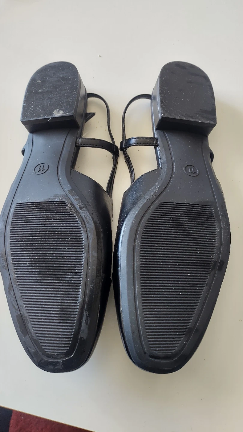 These black Sandals from A New Day feature a cap toe and adjustable ankle straps. Size is 11.