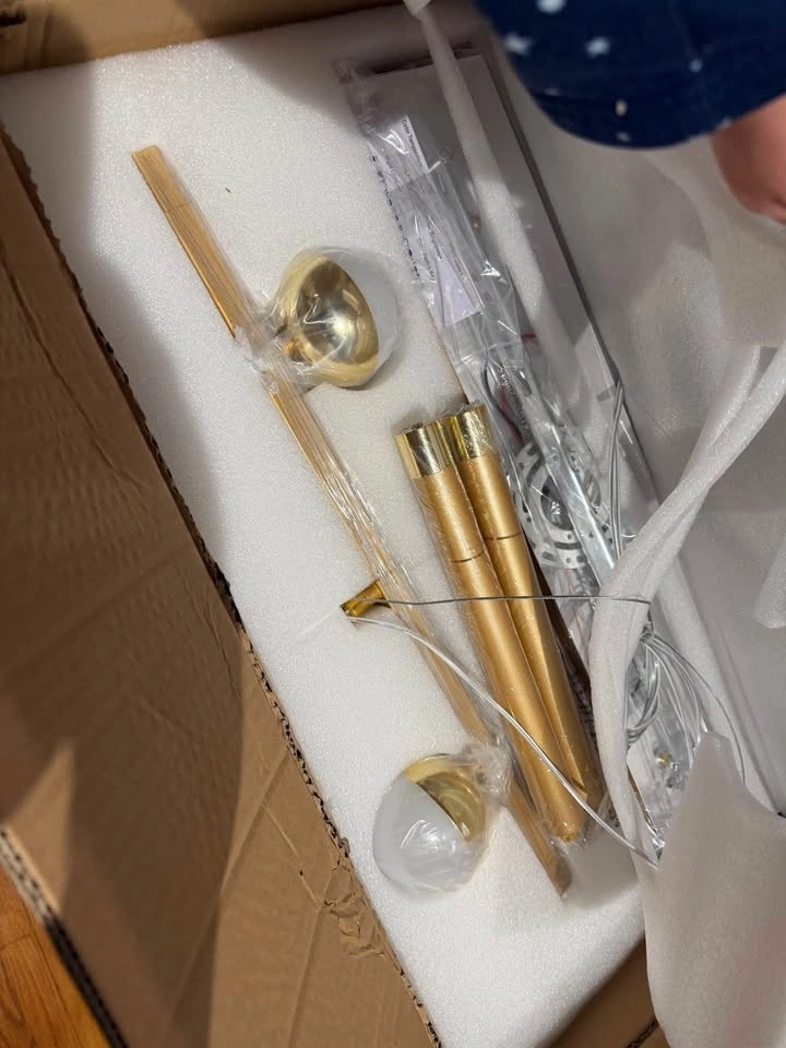 Upgrade your space with this stunning, high-end Modern Gold Chandelier. Perfect for dining rooms, kitchen islands, or living areas! This linear pendant light combines elegance with a futuristic geometric touch. Condition: Brand New / Like New. Features: Dimmable LED (Adjustable brightness with remote control) π‘. Design: Linear bar with integrated rings, globe bulbs, and spotlights. Size: 39 inches (100cm) - Ideal for medium to large tables. Finish: Luxurious brushed gold/brass π. Includes: Remote control for easy atmosphere adjustment. Give your home that "luxury hotel" feel!