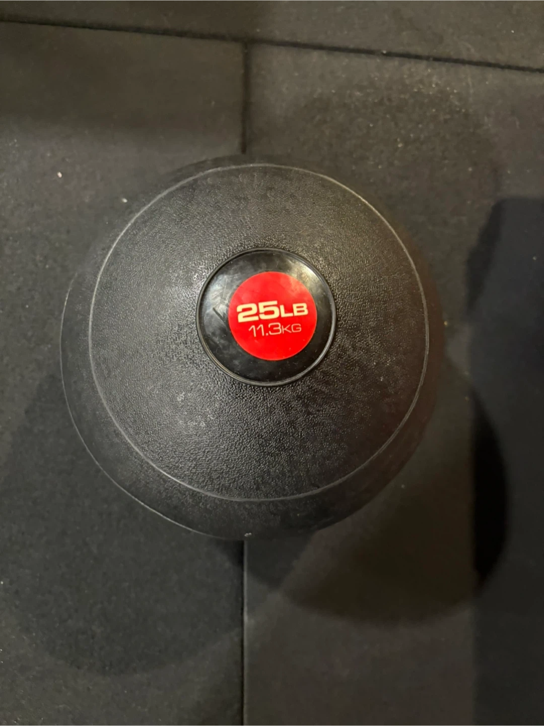 This is a 25LB slam ball, weighing 11.3KG. It's made of durable rubber for intense workouts. Great for functional training and power development!