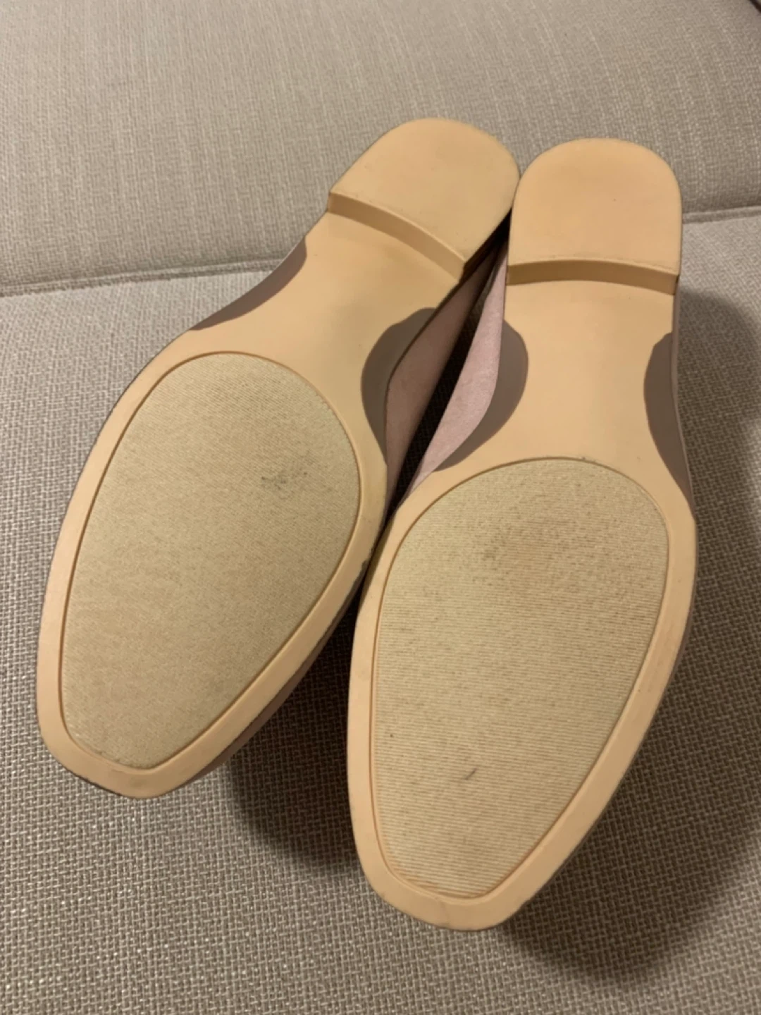Selling a pair of loafers in a lovely pink colour! They are a size 9.5 US and made with faux suede soft material. These stylish shoes are perfect for adding a touch of elegance to any outfit.