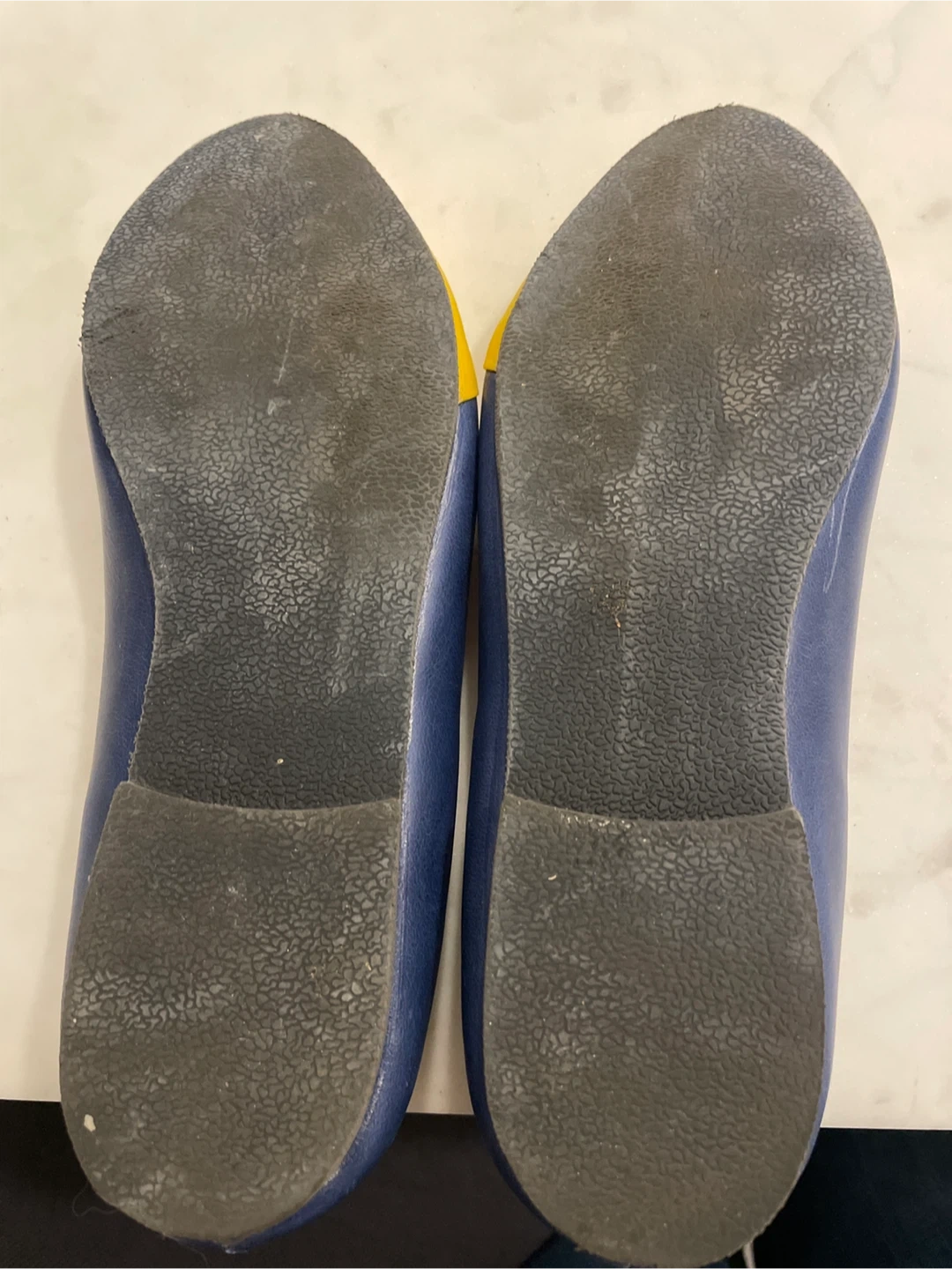 š„Leather Blue and Yellow Pointed Toe Flats sz 6