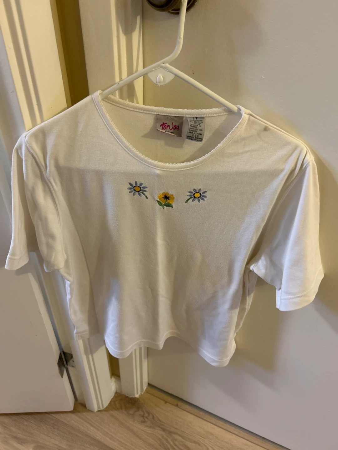 Buy & SellTan Jay Petite White Embroidered Floral T-ShirtTan Jay Petite White Embroidered Floral T-Shirt$7White Tan Jay Petite t-shirt with a small embroidered floral design. It's a size S/P. Made from a polyester and cotton blend.ConditionLike newSizeSmallBrandTan JayWHERE TO MEETTim HortonsView MapSELLERverifiedJuneStirling Pl600 reviews0 chats·0 favorites·2 viewsSEND CHAT TO SELLERHi June! I’m interested in your listing.Hi June! I’m interested in your listing.Get the Karrot app to chatSign In to chat