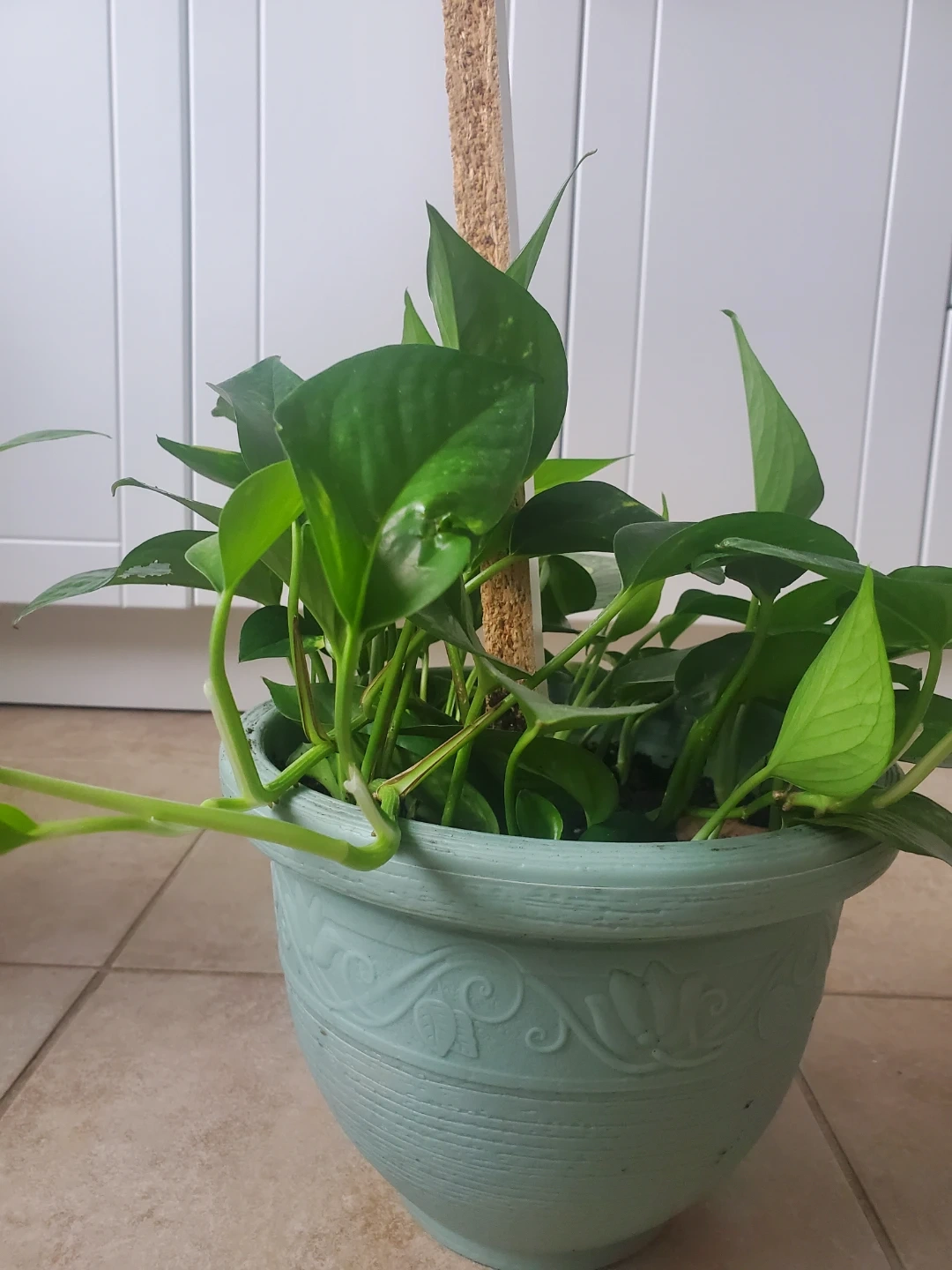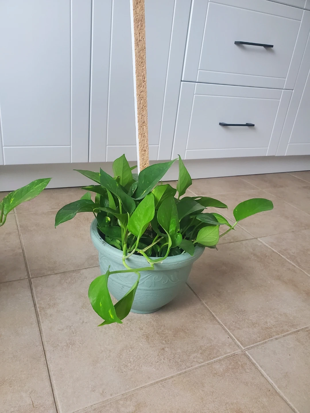 Selling a healthy Pothos plant in a lovely pot! It comes with a climbing pole to encourage vertical growth. Perfect for adding some greenery to your home