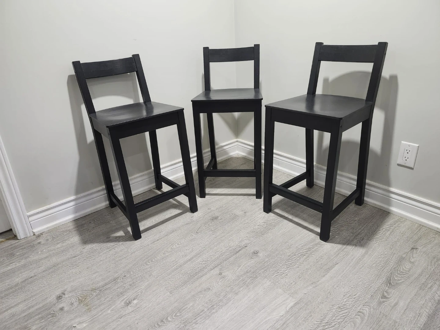 Black Wooden Bar Stools with Cushions (3)