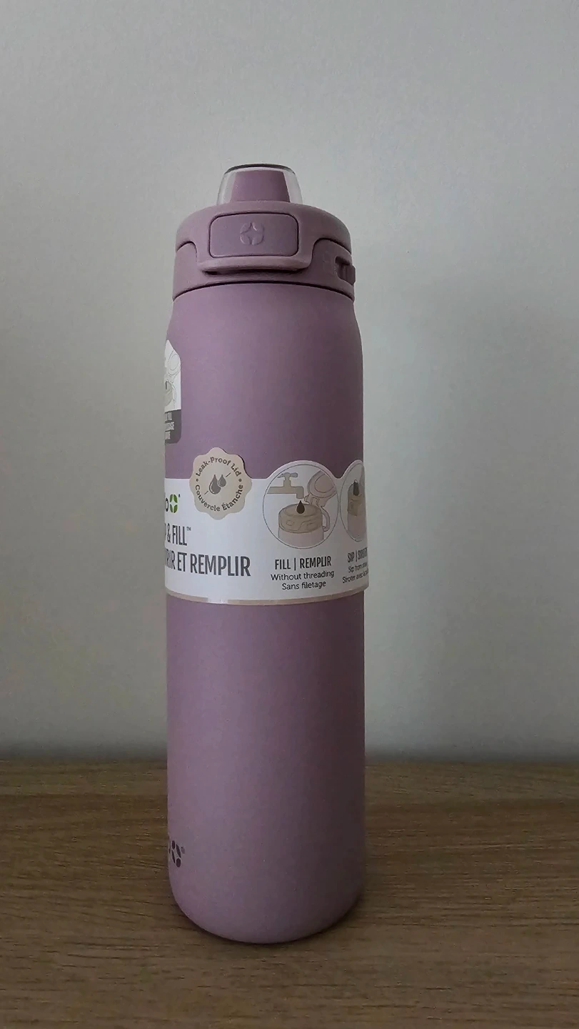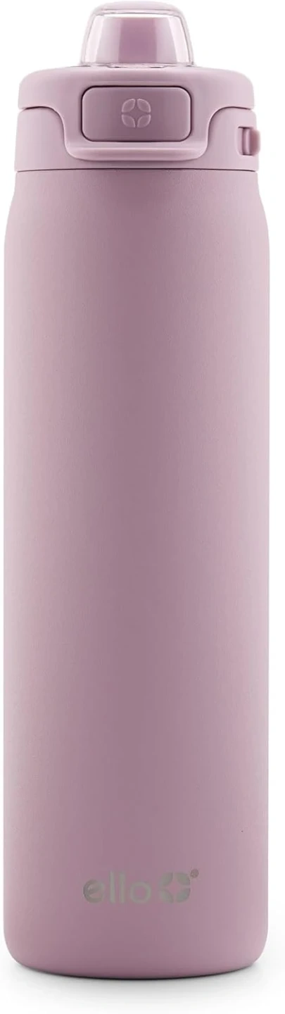 This Ello water bottle holds 22 oz (651 ml) of liquid. It's designed for quick filling and has a leak-proof lid. The bottle keeps drinks cold for 24 hours and is dishwasher safe.