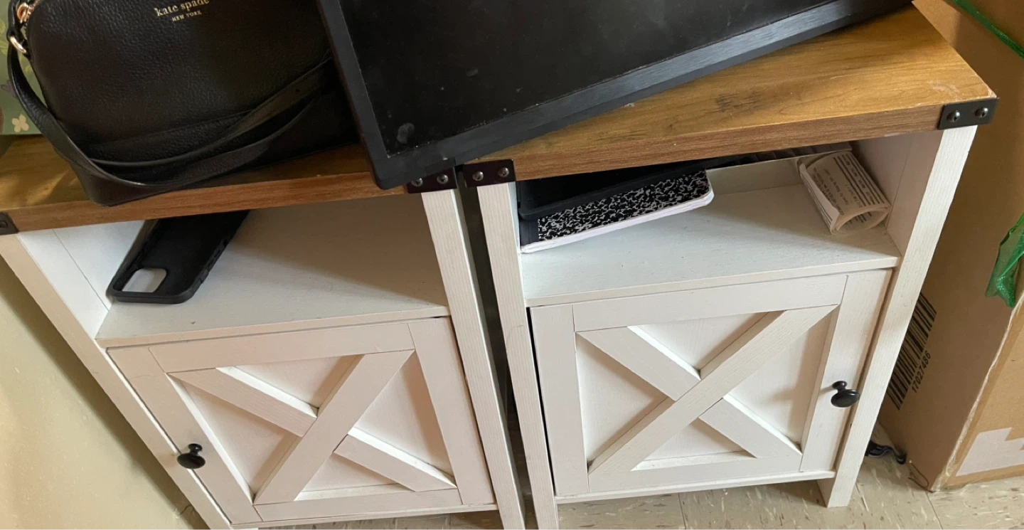 White Farmhouse Style Side Table / Cabinet - Set of 2