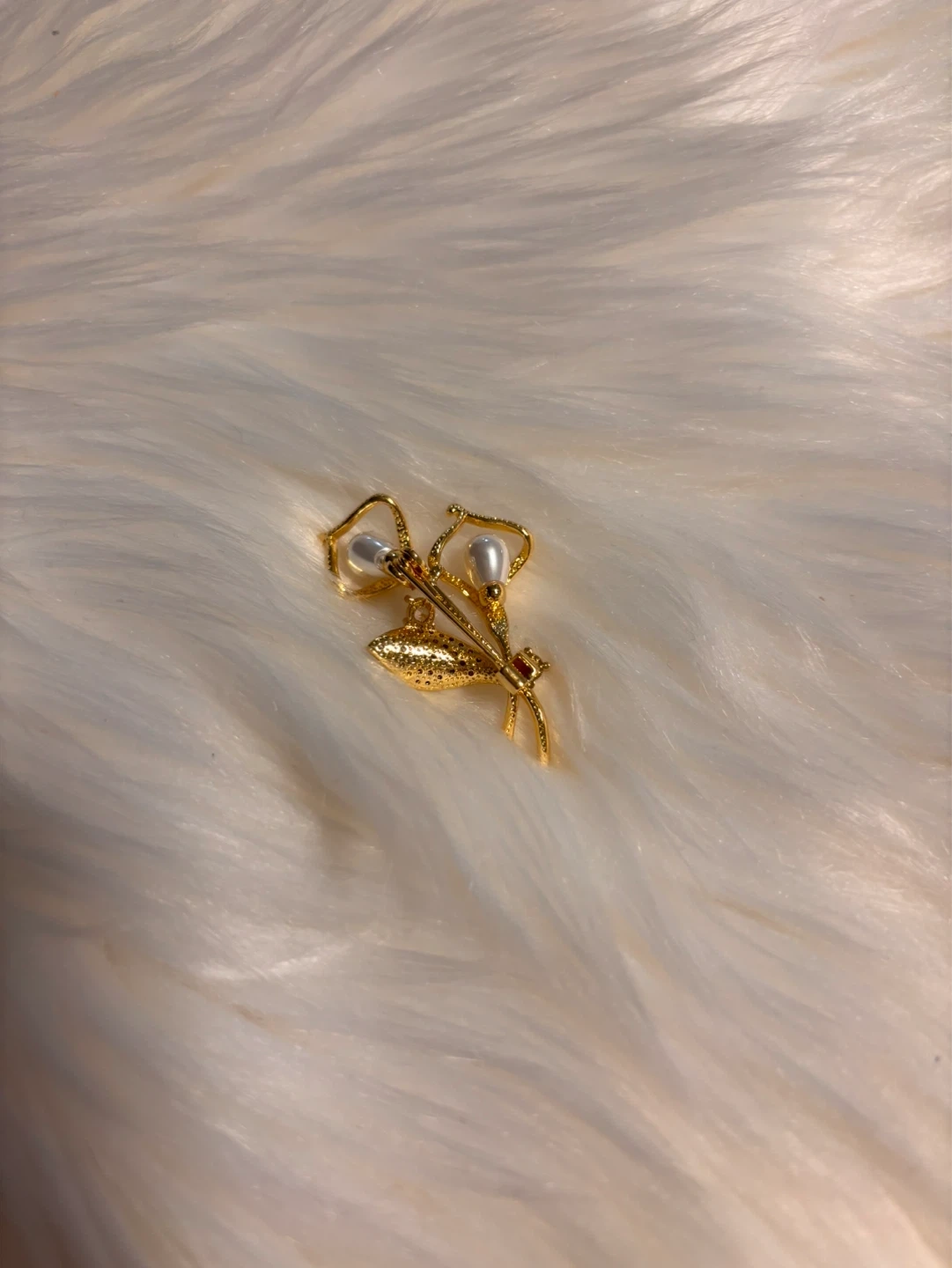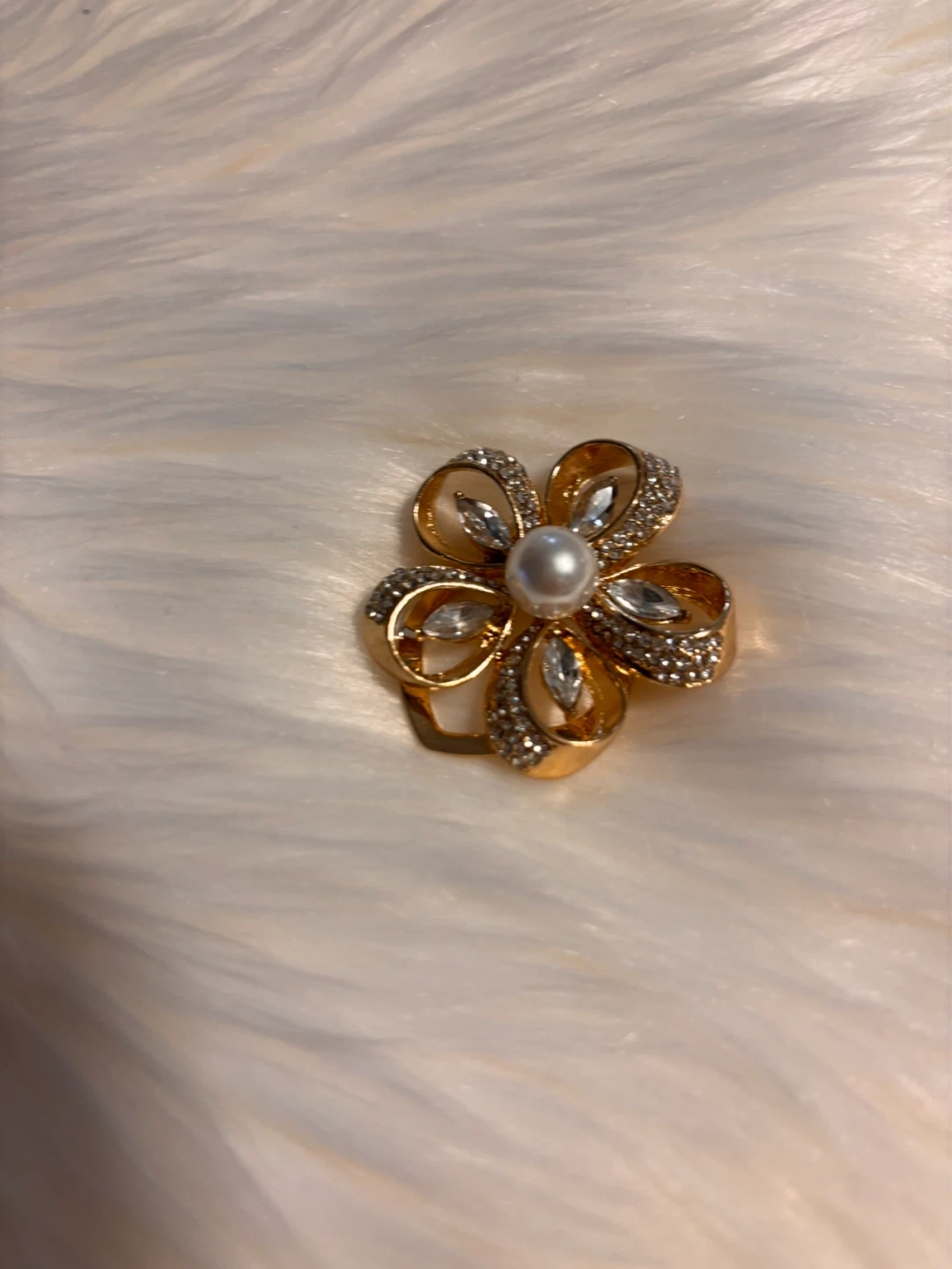 Gold-tone Brooch Set with Faux Pearls and Rhinestones