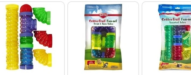 One Level Habitat and 2 Two-Level Habitats with tubes to connect them. Includes a petting zone, food dish and water bottle. Features a look-out tower, exterior exercise wheel and front access door. Connects to other CritterTrail habitats with CritterTrail Fun-nel accessories to create expanded living space. Narrow wire spacing ensures that your pet will remain safely and securely inside. Ideal habitat for a hamster, gerbil, mouse or other small animal. Cage Dimensions: 20" x 11.5" x 16". Bar Spacing: 1/4". Measures 16 x 1.5 x 16 inches.