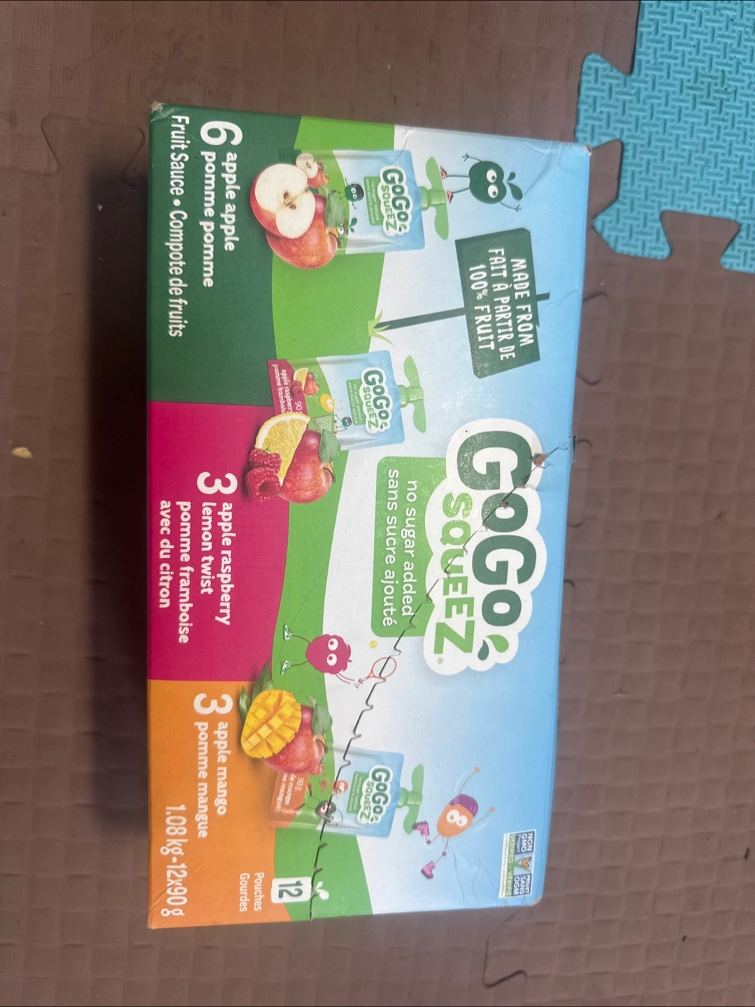 Selling a box of GoGo squeeZ fruit pouches! This variety pack includes 6 apple apple, 3 apple raspberry, and 3 apple mango pouches. Perfect for a quick and healthy snack for kids. Expiry Date is 2024 December