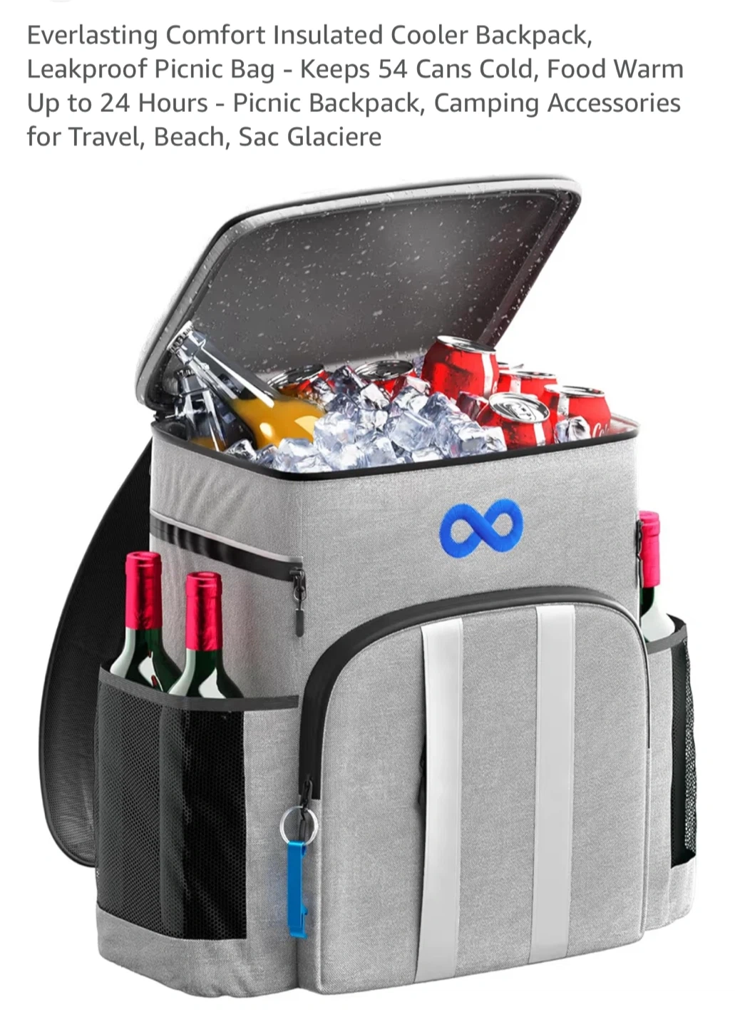 This Everlasting Comfort insulated cooler backpack is perfect for picnics and camping! It's a leakproof picnic bag that keeps 54 cans cold or food warm for up to 24 hours. Great for travel and beach trips too