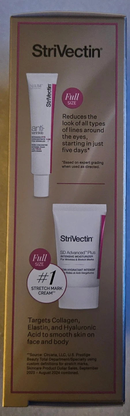 This Strivectin set includes a full-size Anti-Wrinkle Intensive Eye Concentrate for Wrinkles and a full-size SD Advanced Plus Intensive Moisturizer for Wrinkles & Stretch Marks. . $109 Value Buy Retail $99