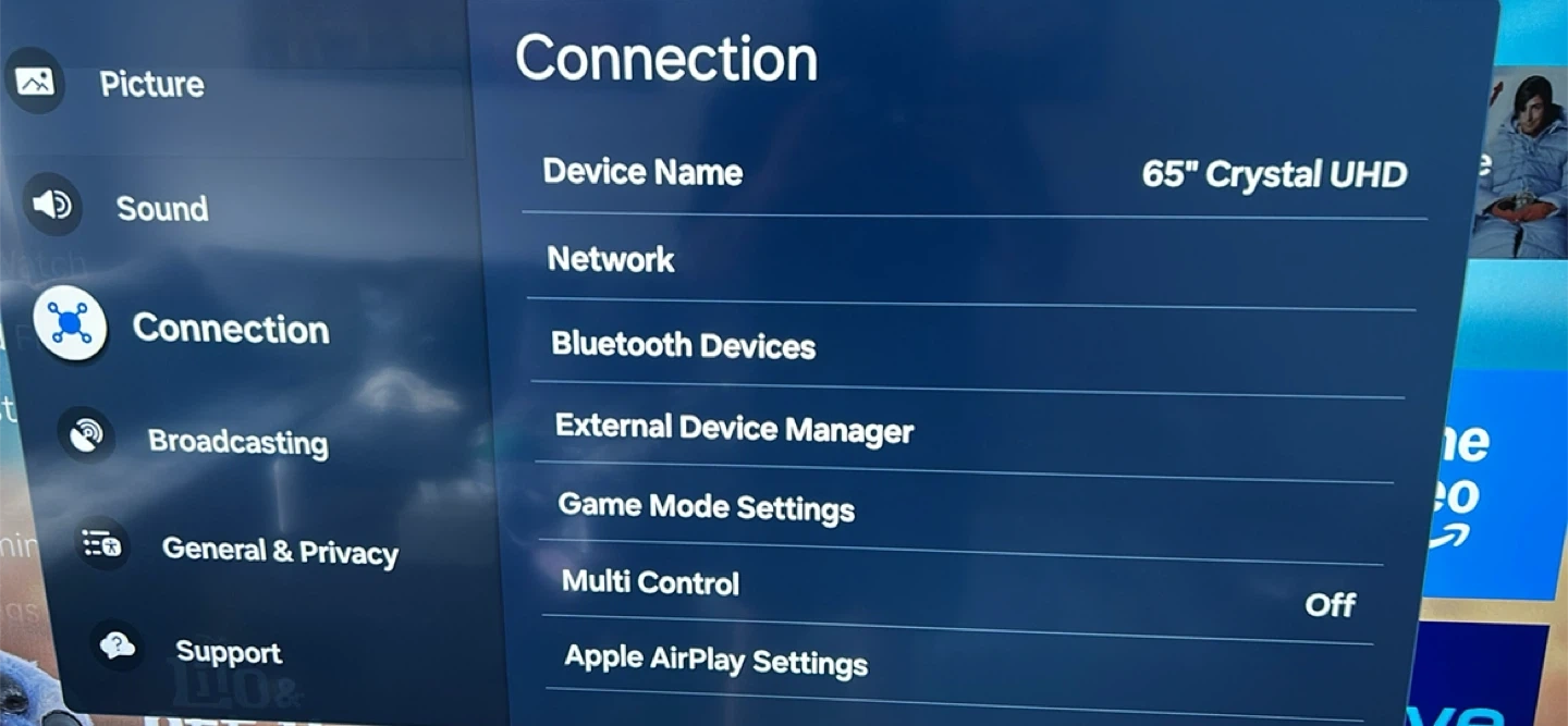 This is a 65-inch Crystal UHD television. It's a smart TV with various connection options. Picture is clear and sound is great!