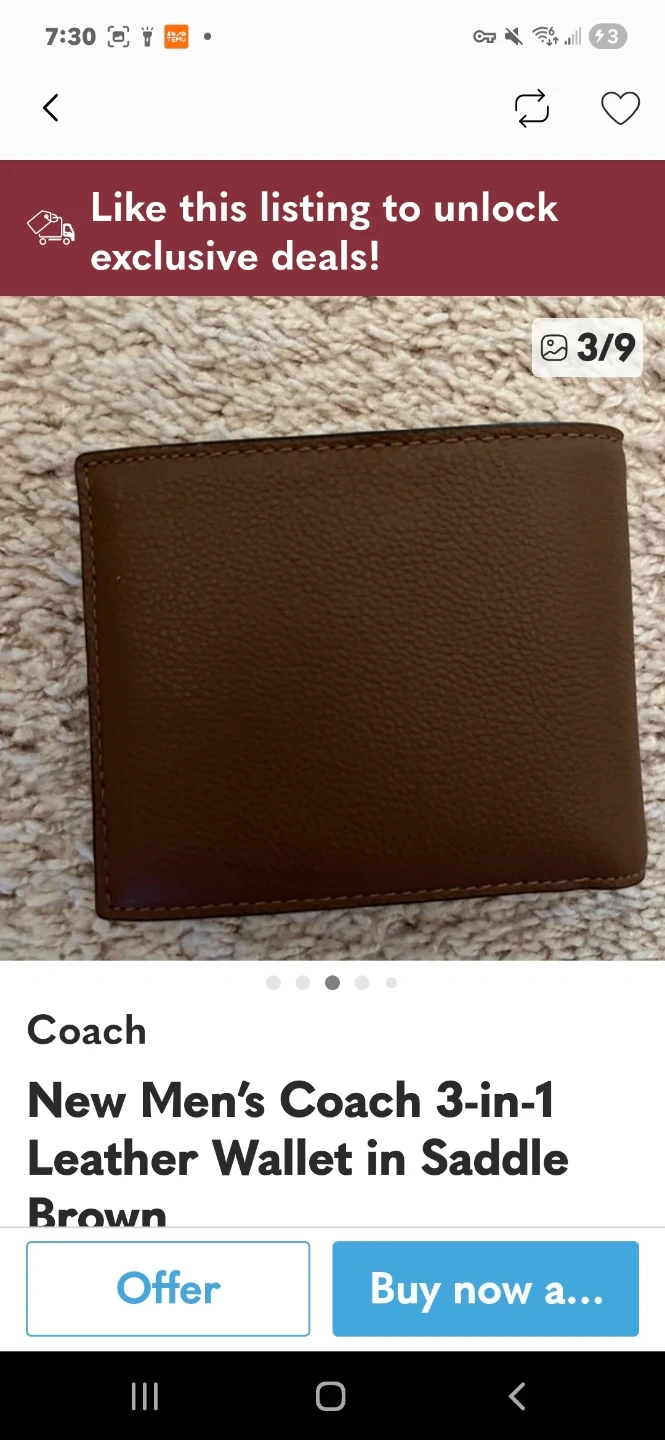 Men's Coach Leather 3in1 Wallet