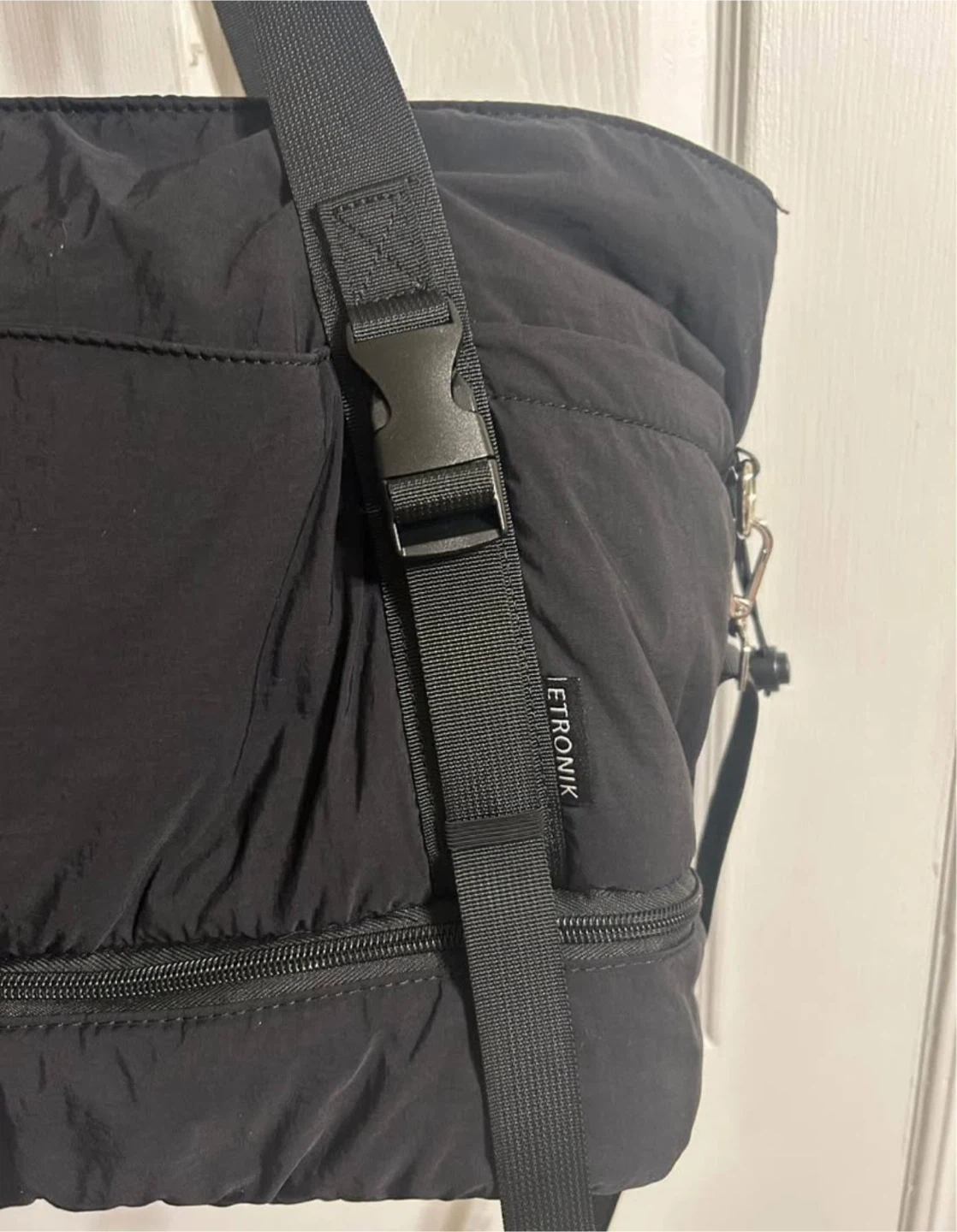 Selling a black tote bag from Etronik! It's in great condition and has a stylish, functional design. Perfect for everyday use or travel