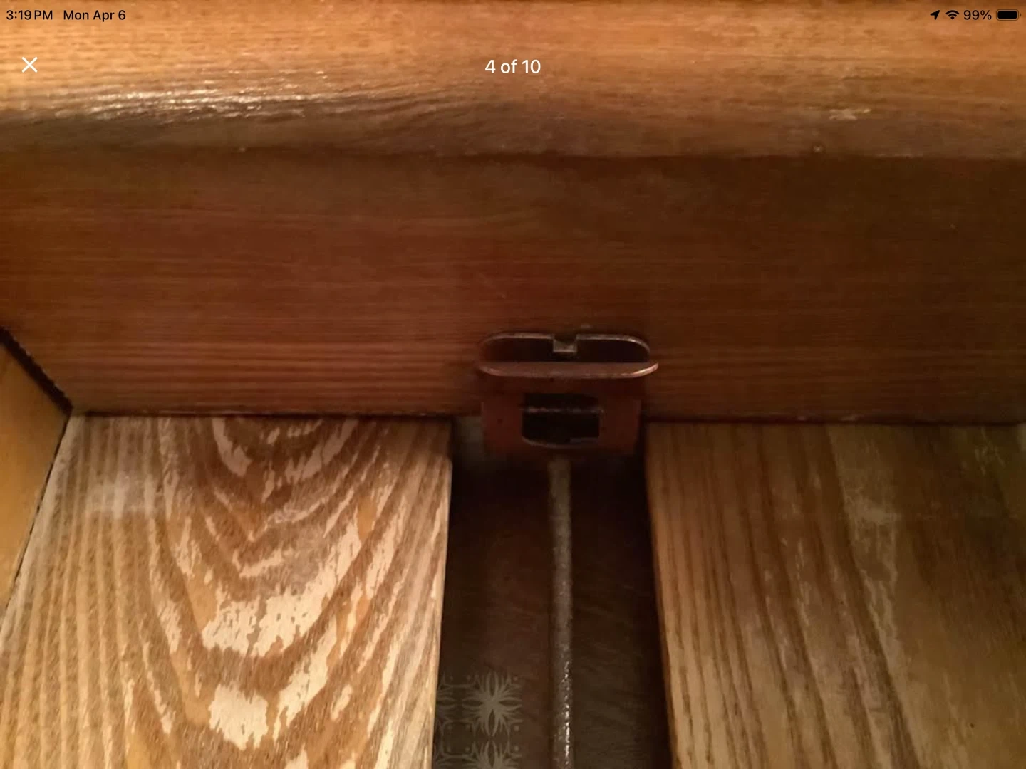 All brass hardware is original. Drawers are all oak wood with brass pulls and interior adjustable sliders with brass hardware.