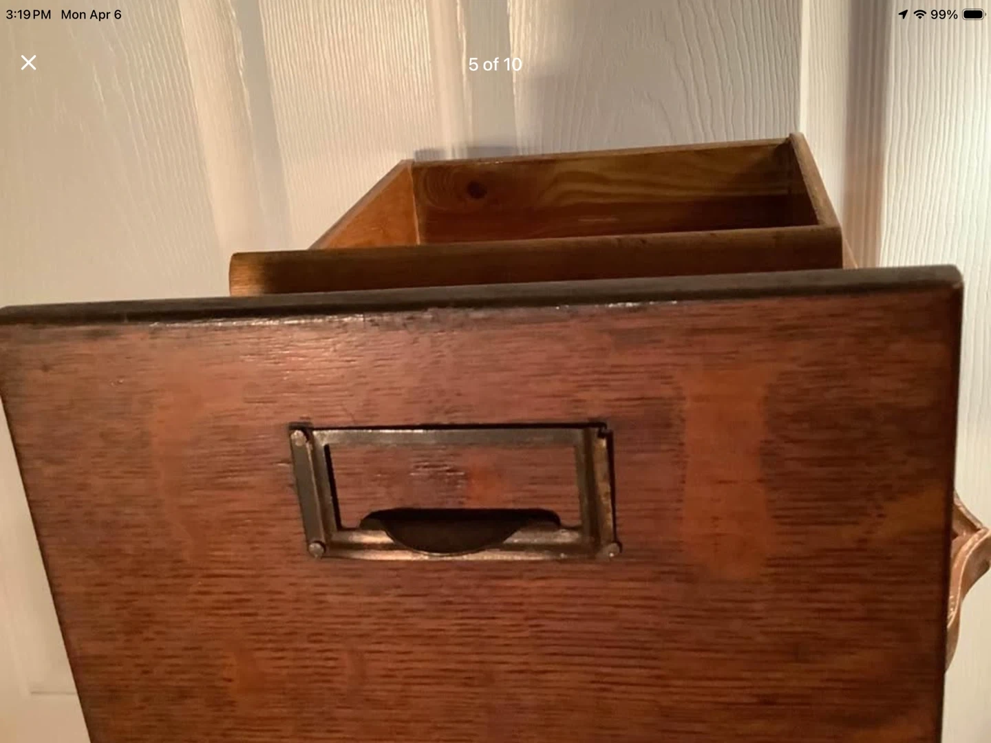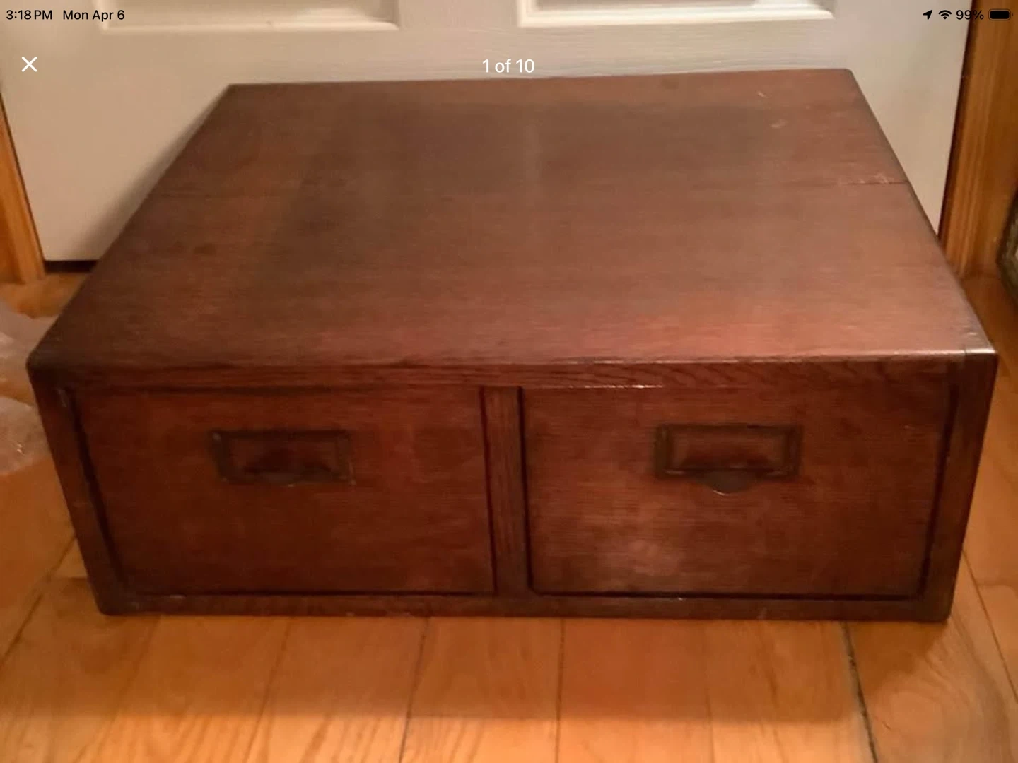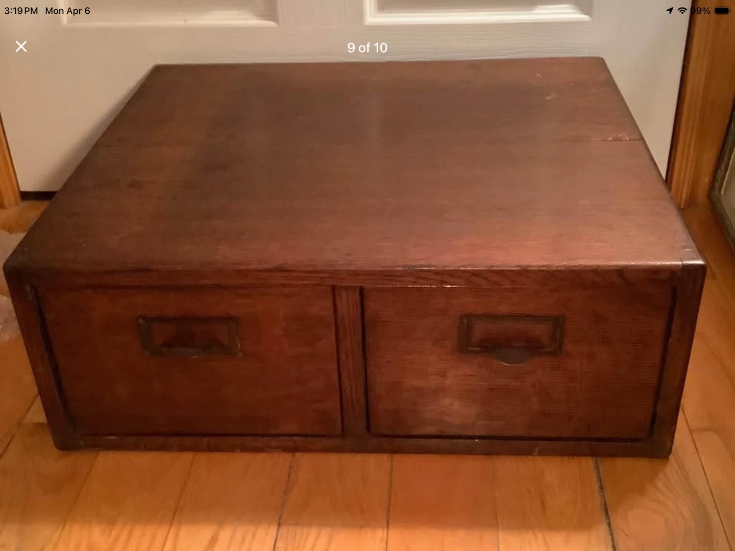Vintage tiger oak wood double file drawer card catalog.
