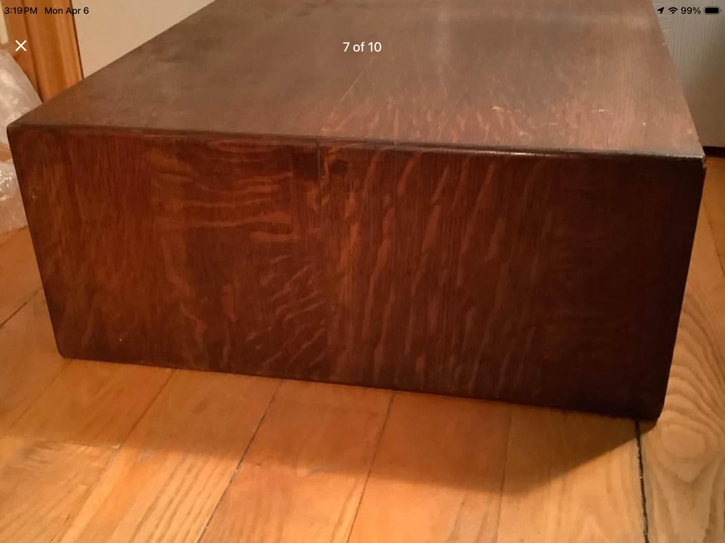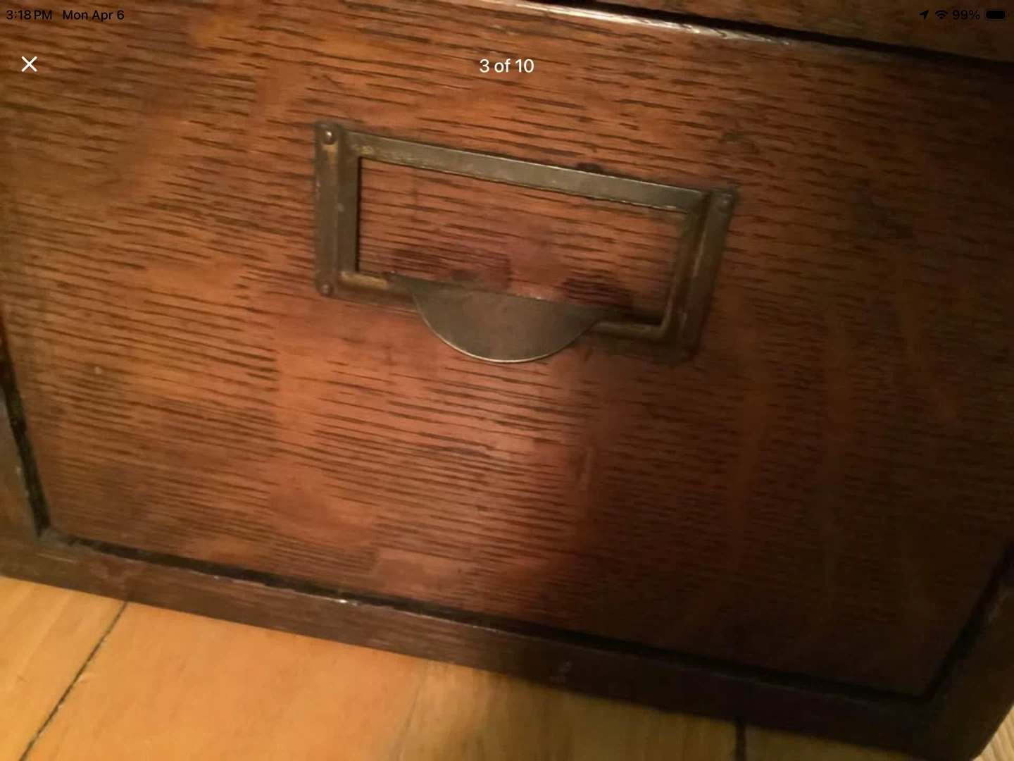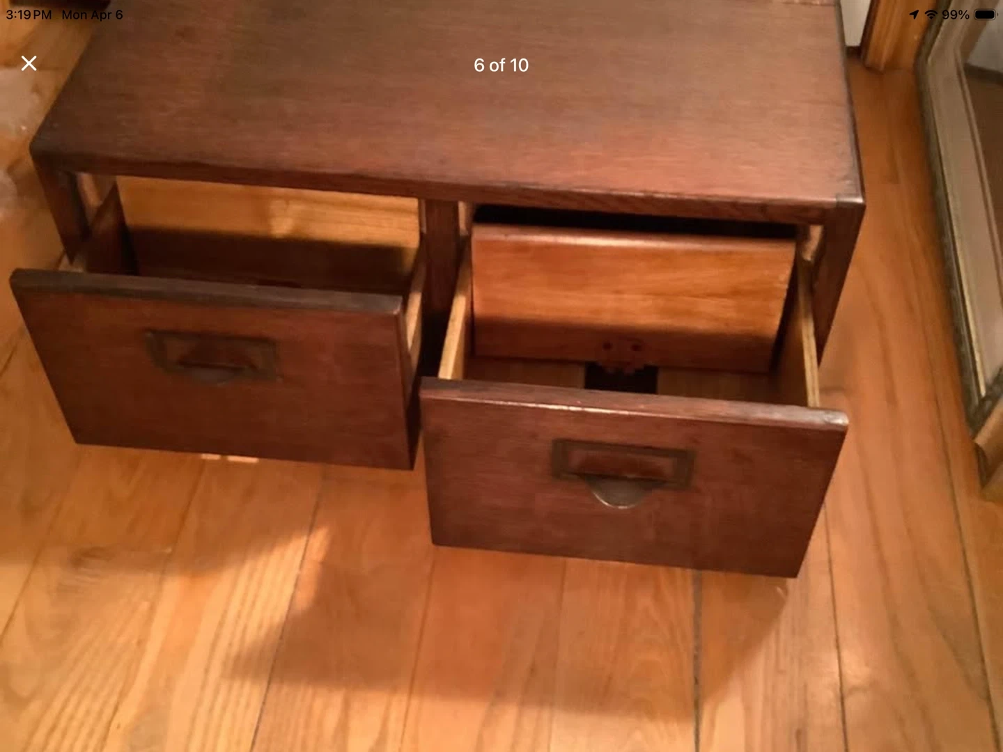 Vintage tiger oak wood double file drawer card catalog.
