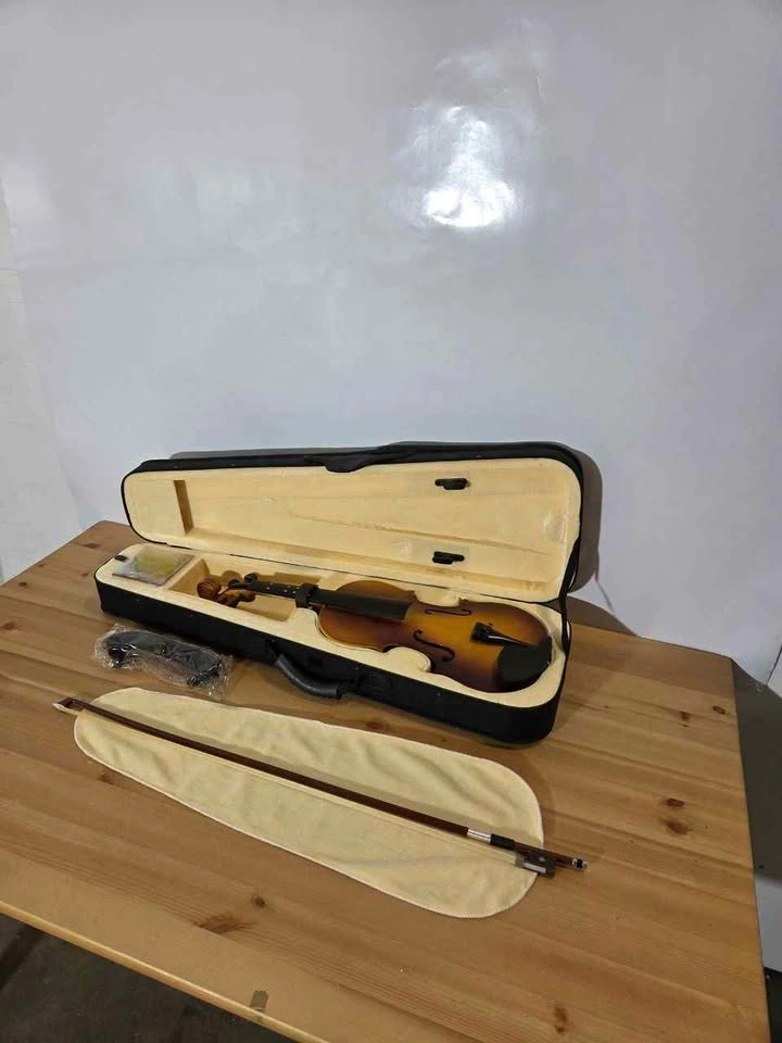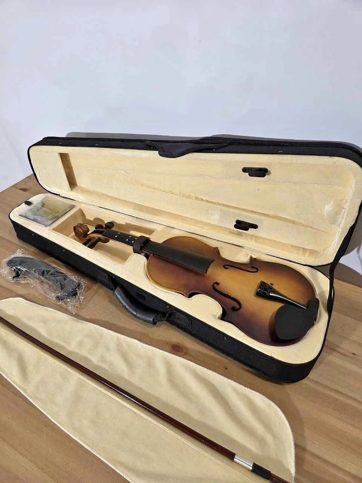 Brand new, full-size 4/4 acoustic violin made of solid wood. Comes with a hard case, bow, shoulder rest, and extra strings. Includes hygrometer, rosin, and a beginner textbook. Perfect for adults and beginner violin players. Great for practice, lessons, and performances. Ready for pickup today.