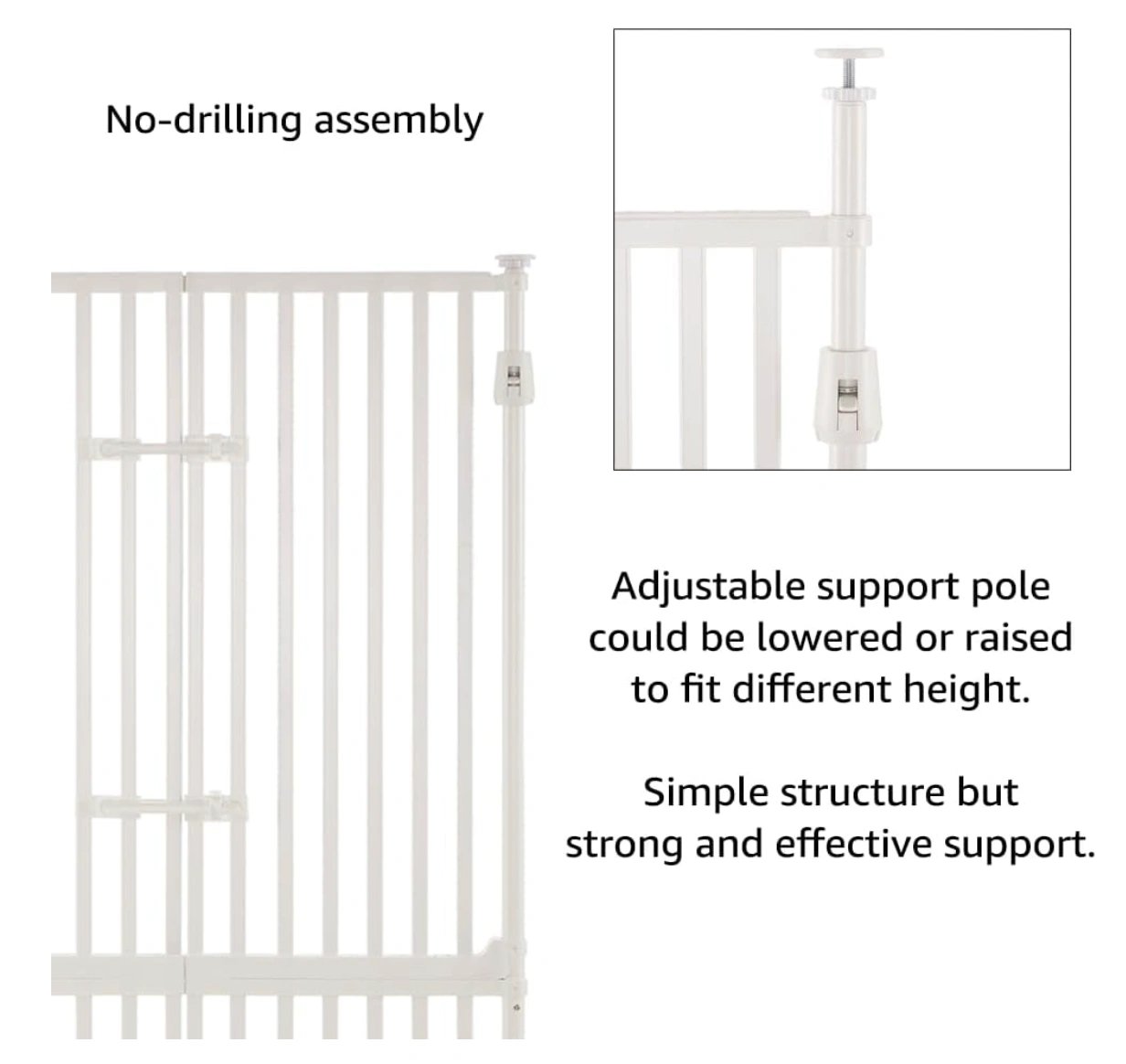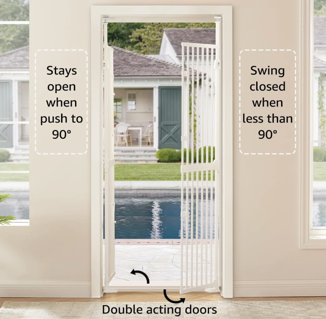 The measurements on this gate are 82" tall and then 32" wide. It's leaning on the door for the pic, but it is brand new.